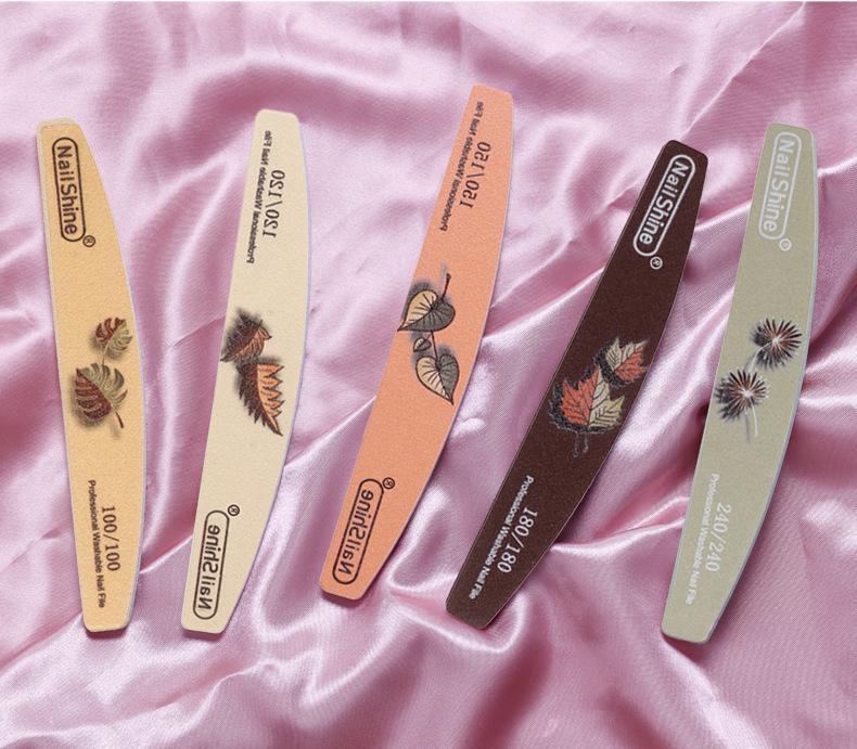 Venda quente transfronteiriça de alta qualidade de impressão de nail art fio de lavagem de arquivo de unhas série lixa meia lua em forma de faixa de lixamento