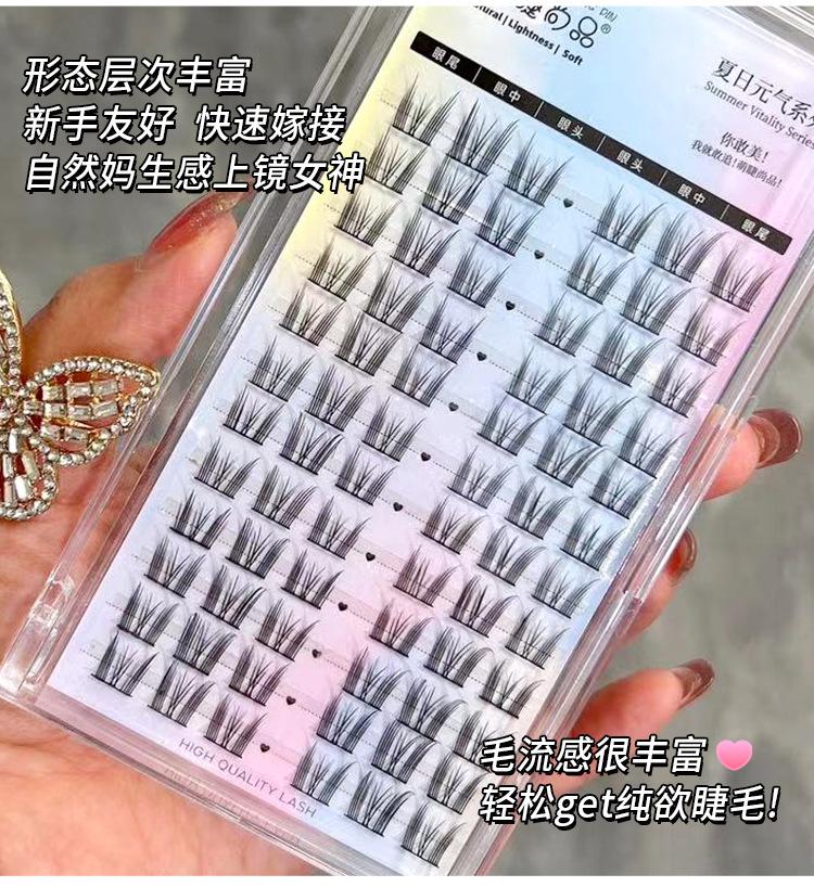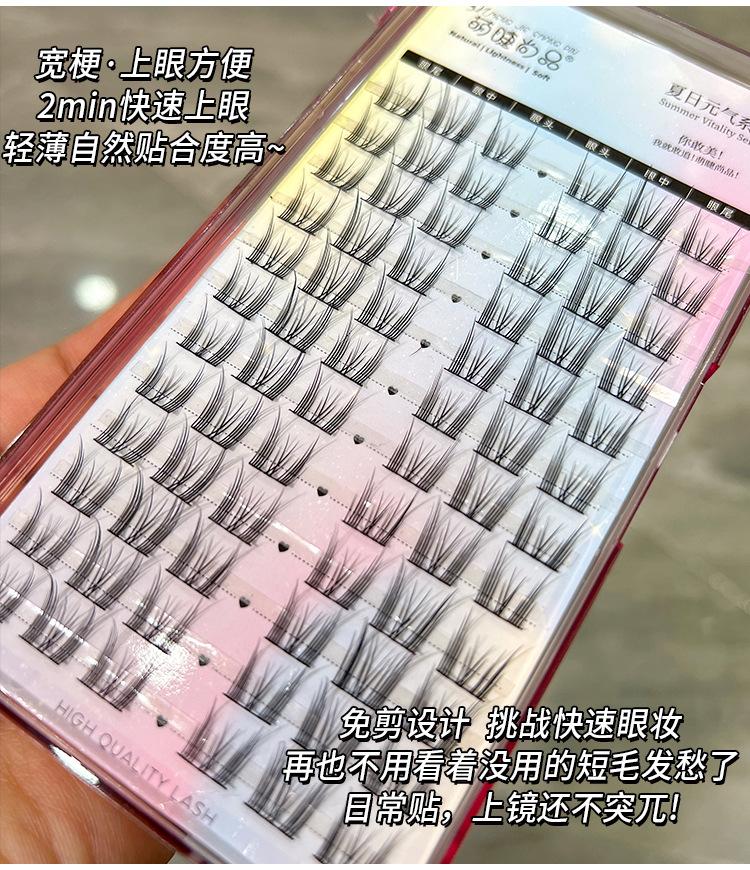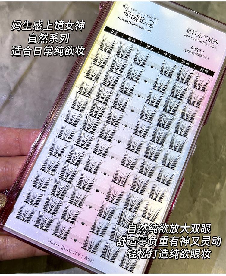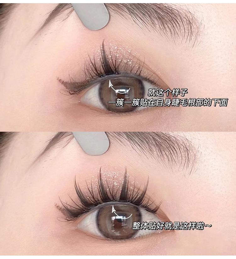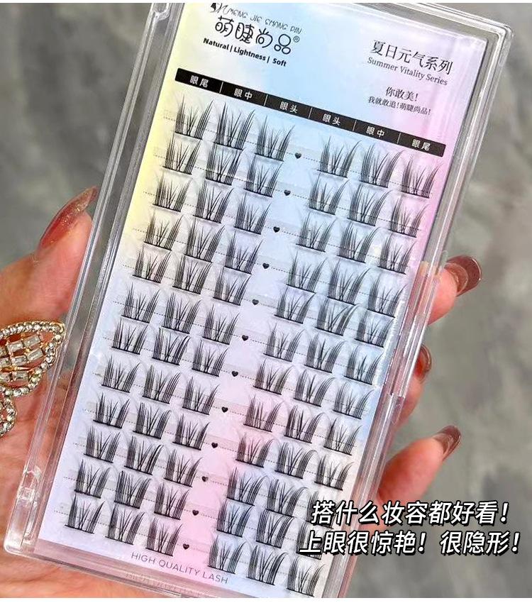 Seleção rigorosa de cílios postiços fofos Shangpin, cílios postiços naturais de desenho animado de gato gênio de grande capacidade, cílios de espelho de demônio segmentados de cluster único
