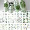 Cross-border novos grandes adesivos de marca d'água de unha tropical chuva verde folha de bambu floresta folha marca d'água adesivos de unha atacado