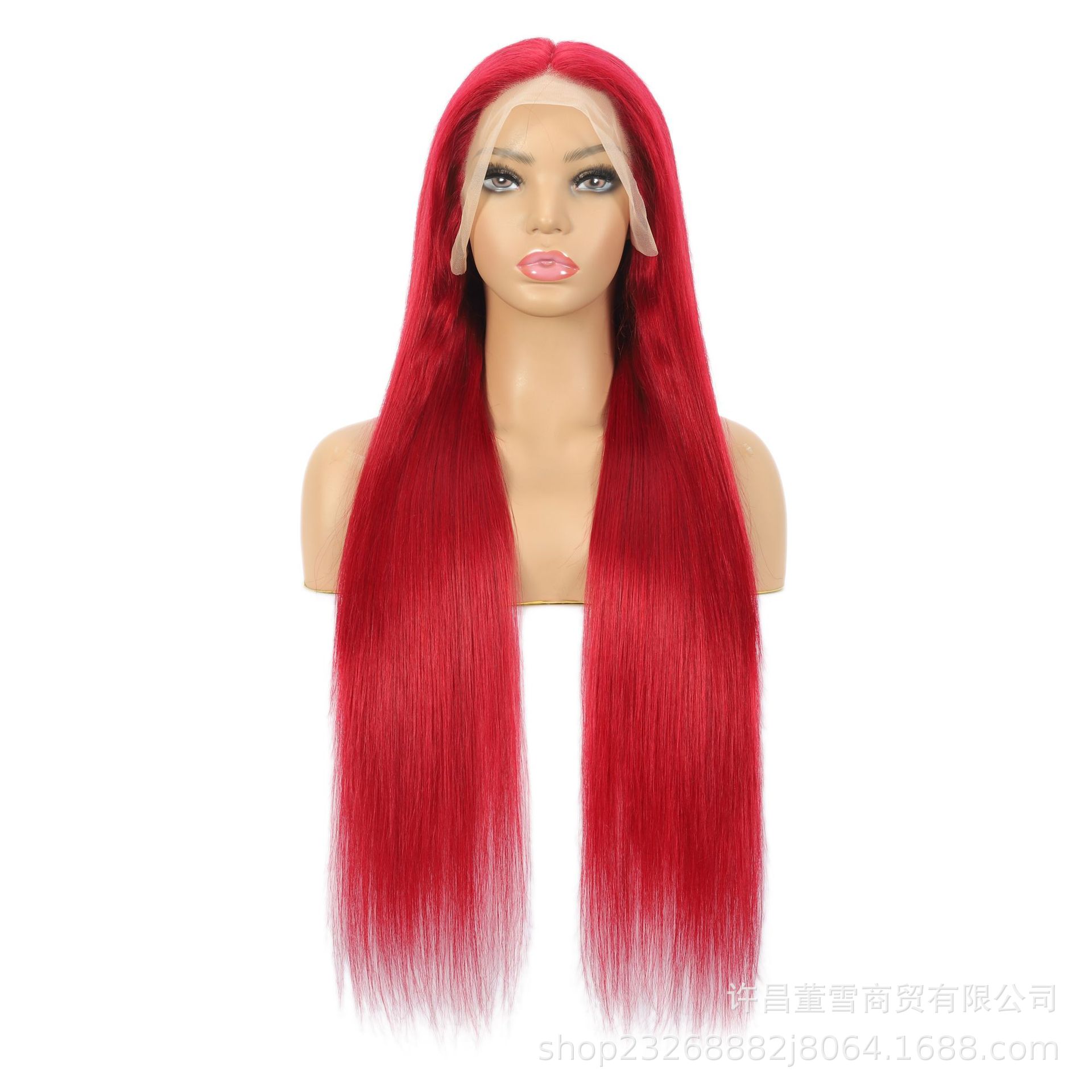 13*4 frontal laço vermelho peruca reta dianteira laço vermelho brilhante peruca real uma geração