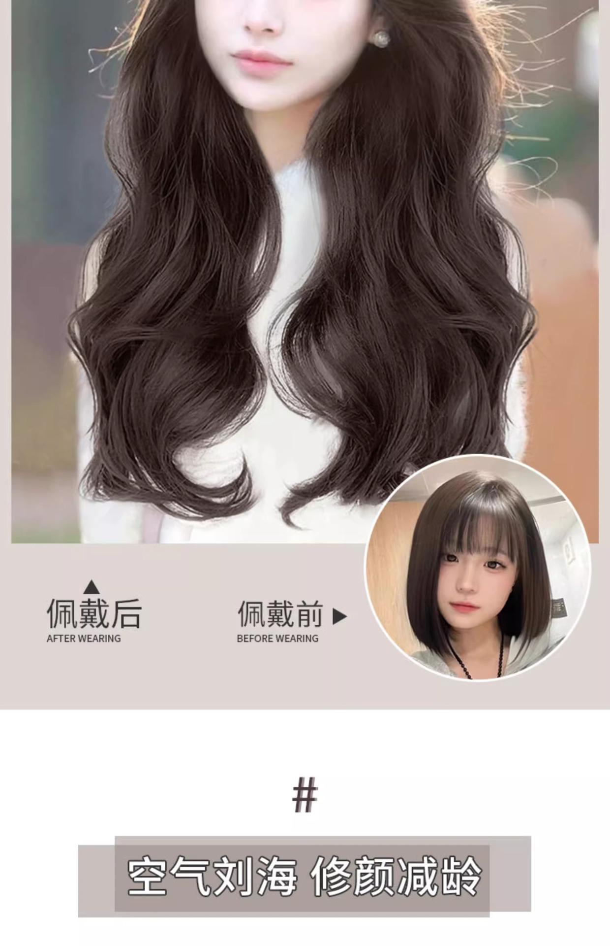 Long curly hair air bangs [black Brown] get 7-piece set for free