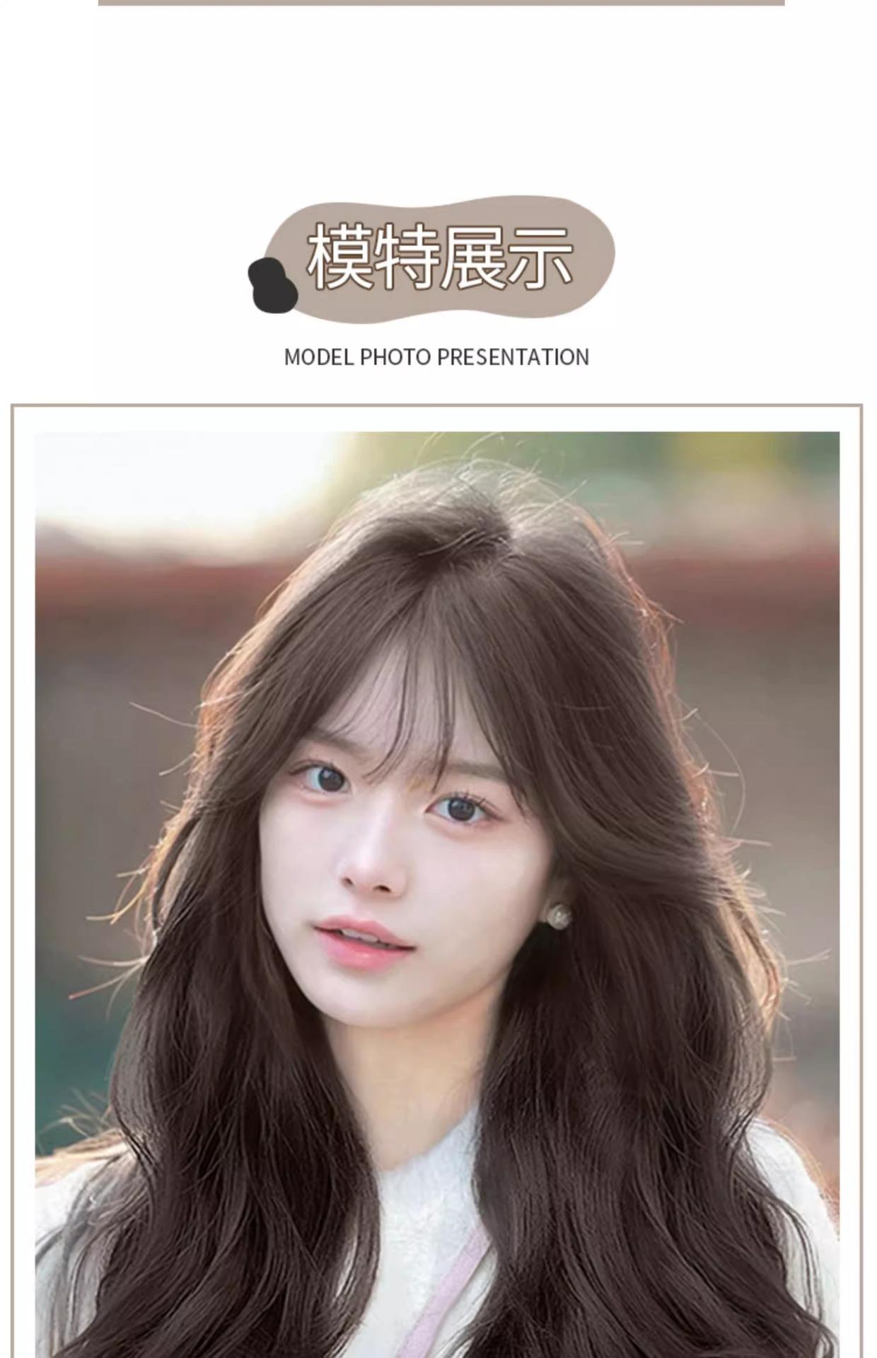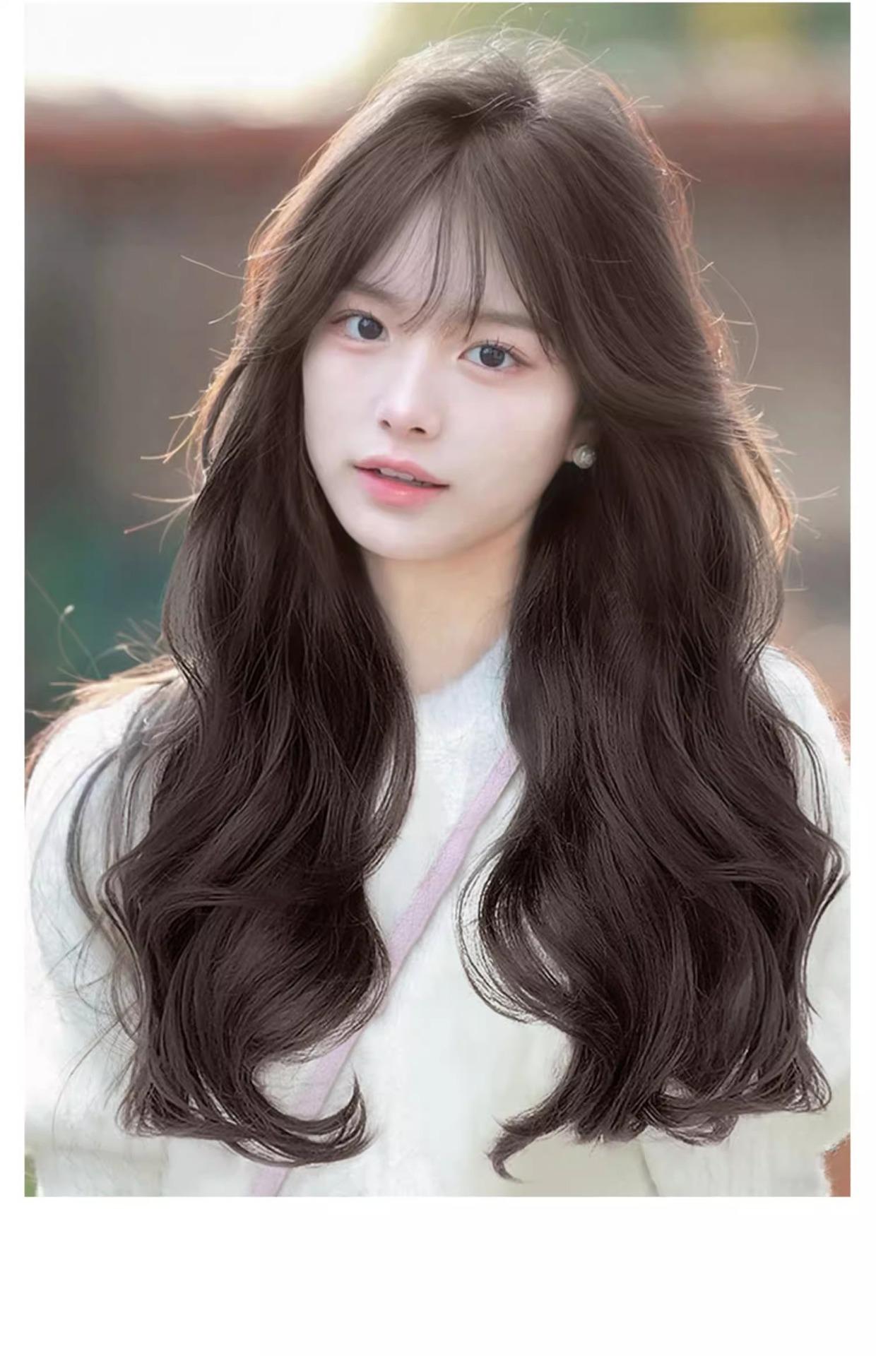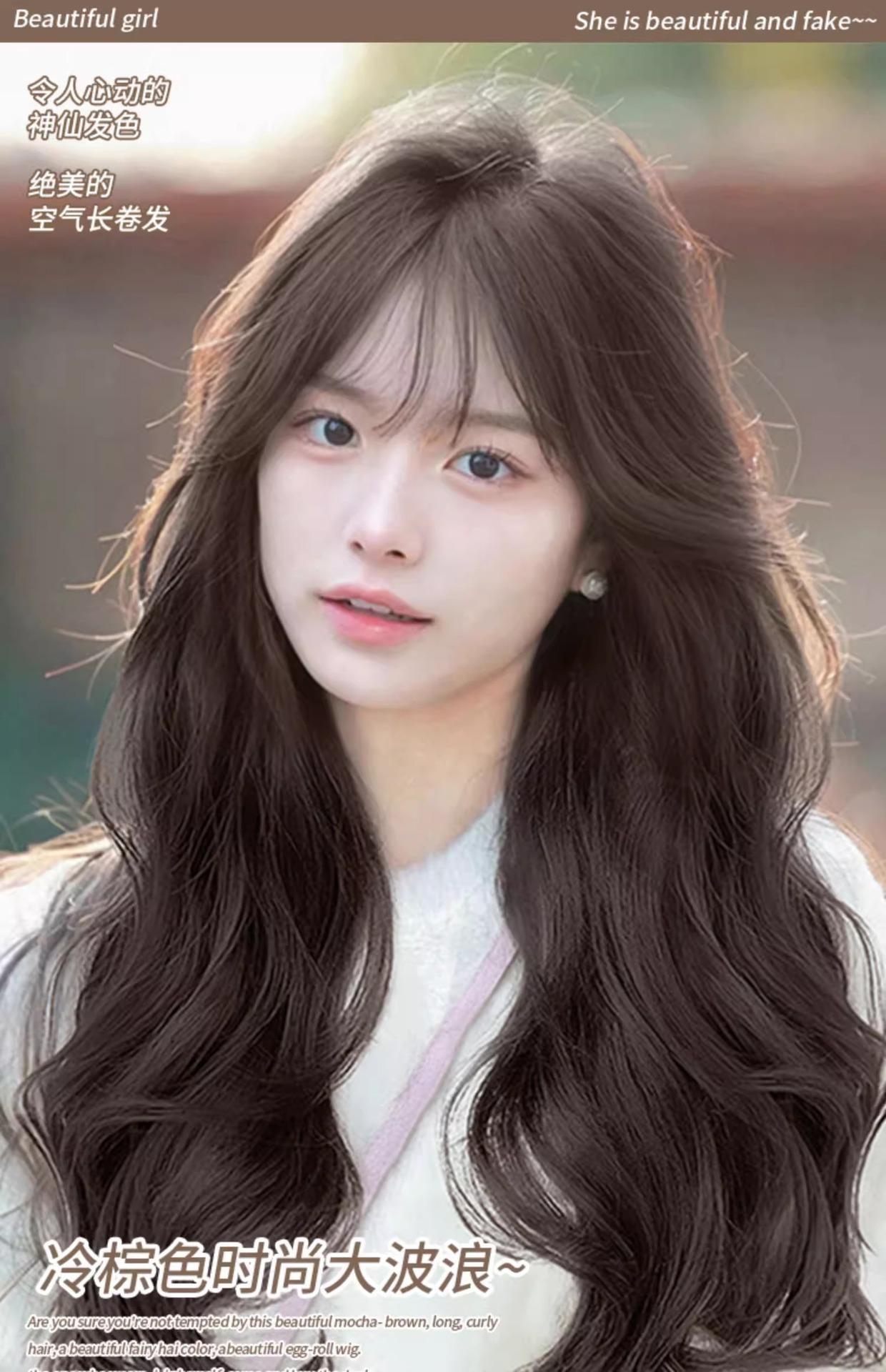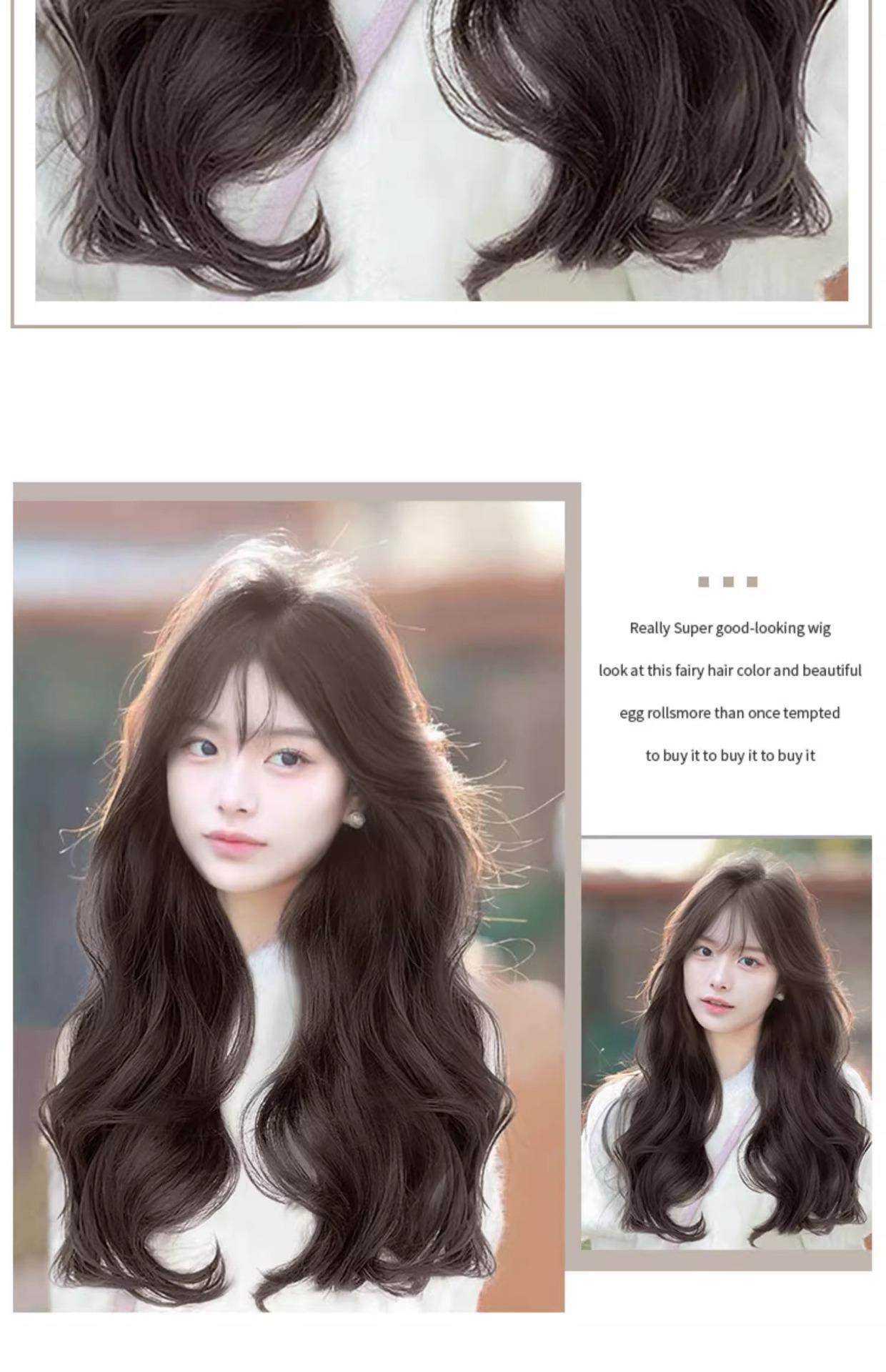 Long curly hair air bangs [Cold Brown] get 7-piece set for free