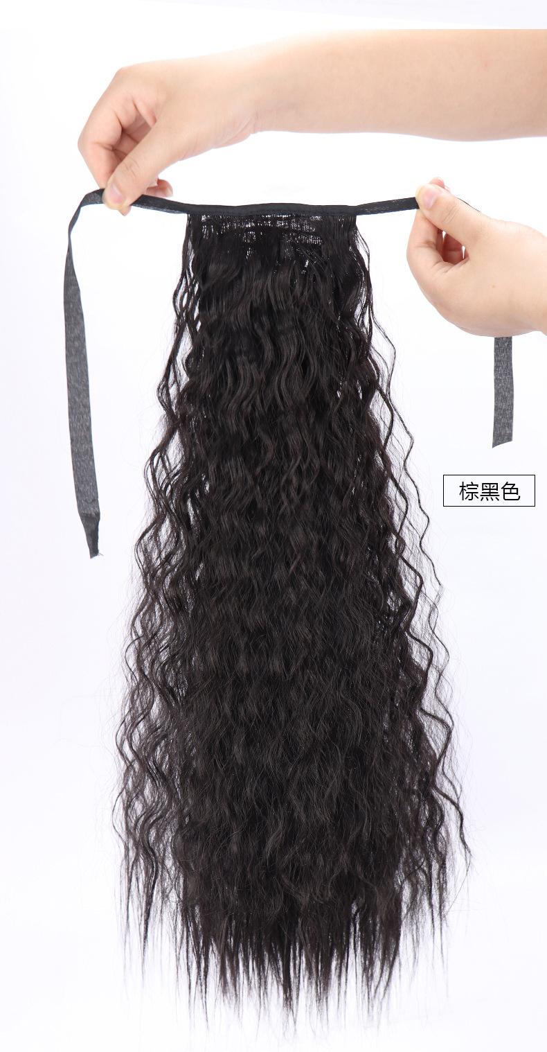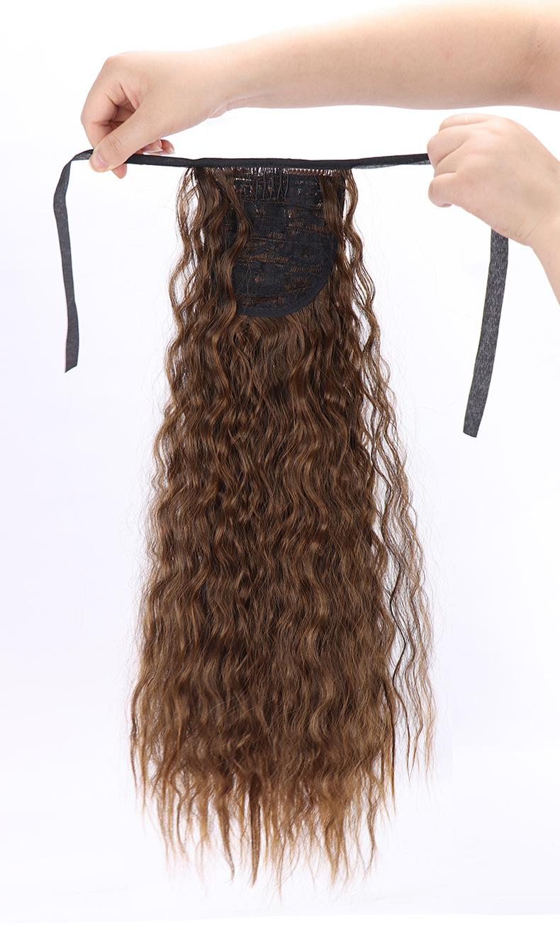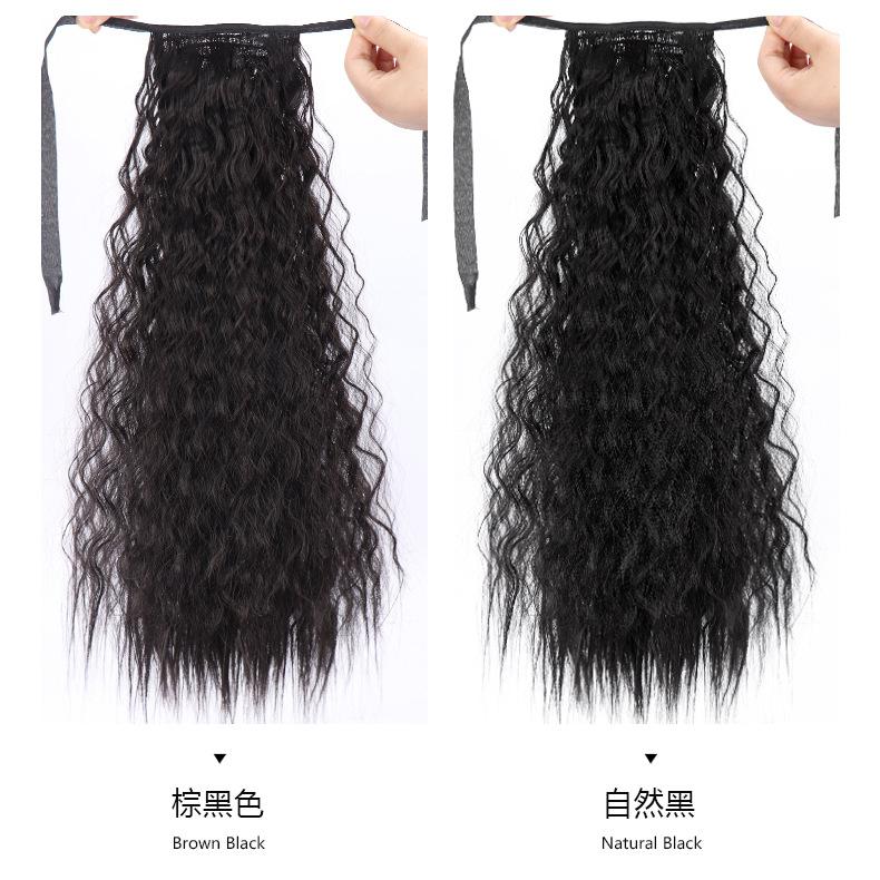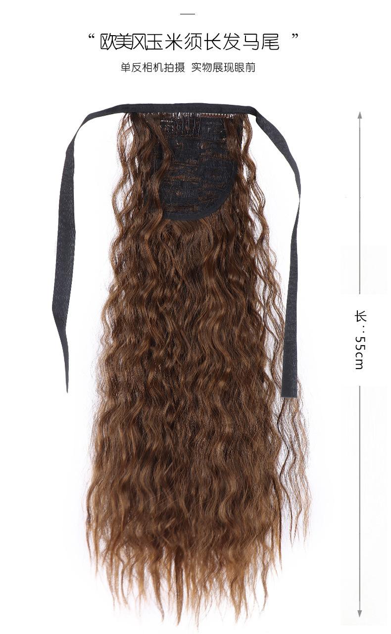 Extensão de cabelo rabo de cavalo falso, ondulado, cacheado, rede vermelha, rabo de cavalo, peruca de cabelo real, feminino, bigode de milho, permanente, tira de cabelo longo