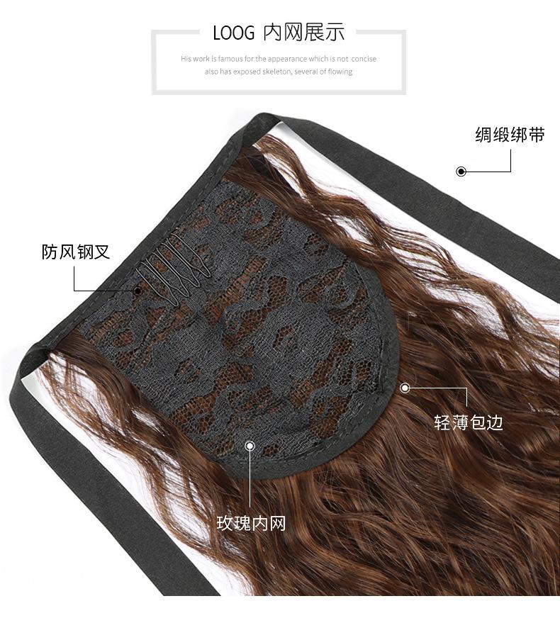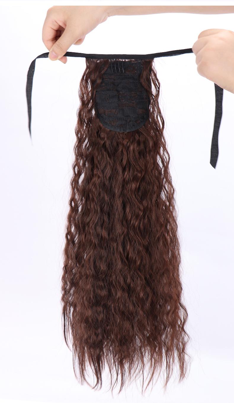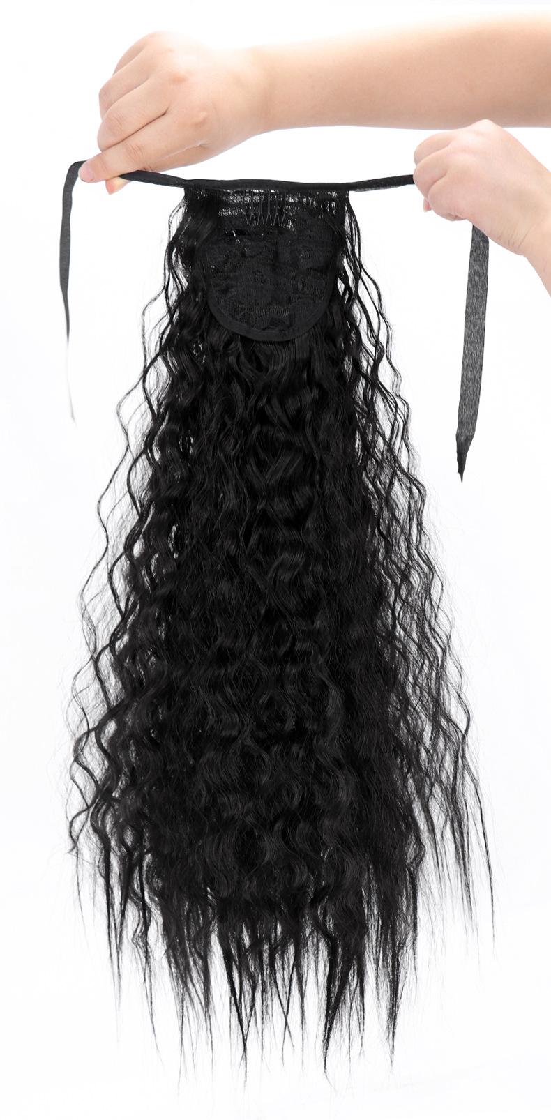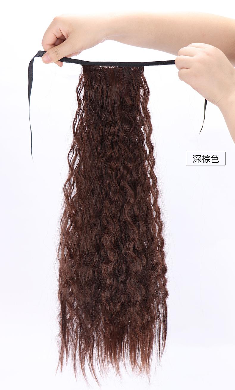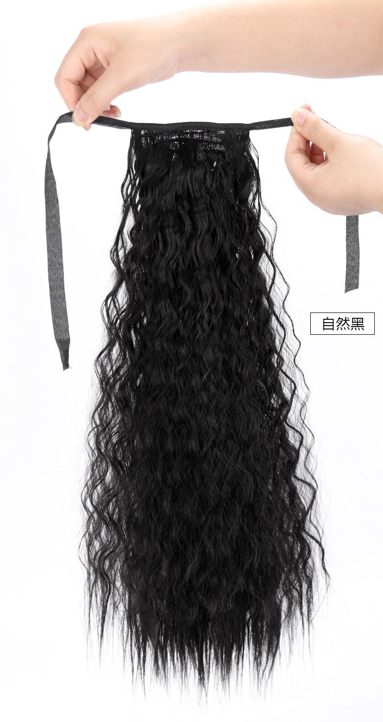 Extensão de cabelo rabo de cavalo falso, ondulado, cacheado, rede vermelha, rabo de cavalo, peruca de cabelo real, feminino, bigode de milho, permanente, tira de cabelo longo