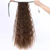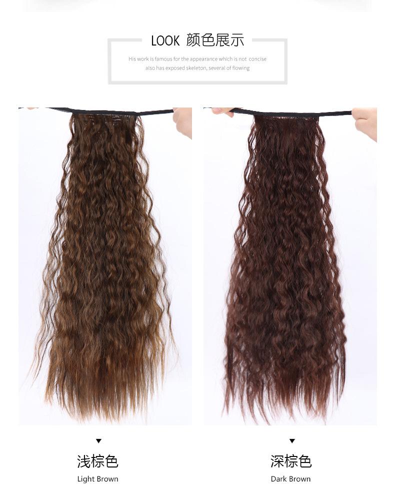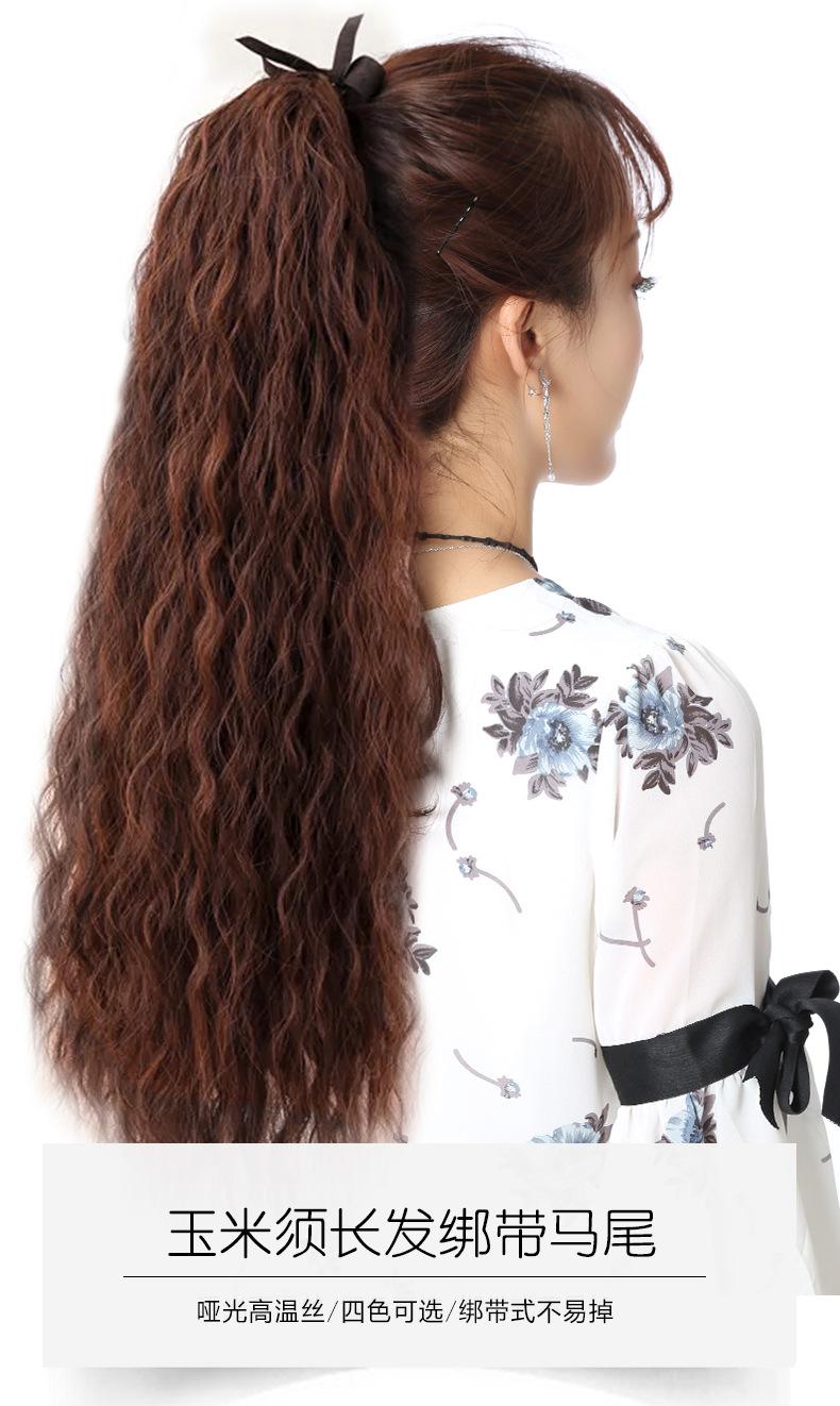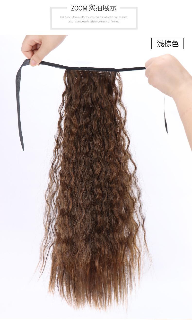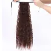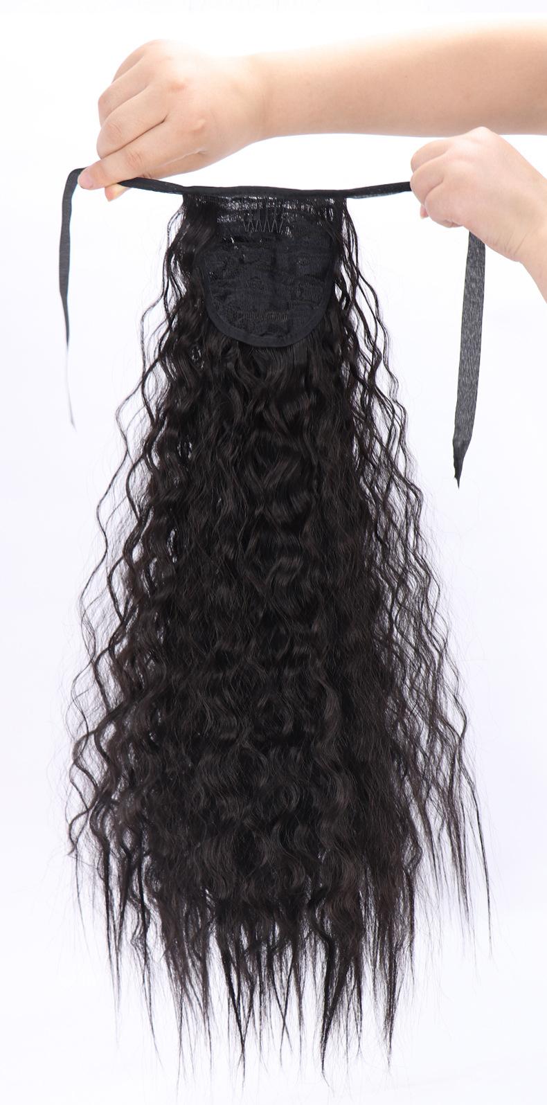 Extensão de cabelo rabo de cavalo falso, ondulado, cacheado, rede vermelha, rabo de cavalo, peruca de cabelo real, feminino, bigode de milho, permanente, tira de cabelo longo