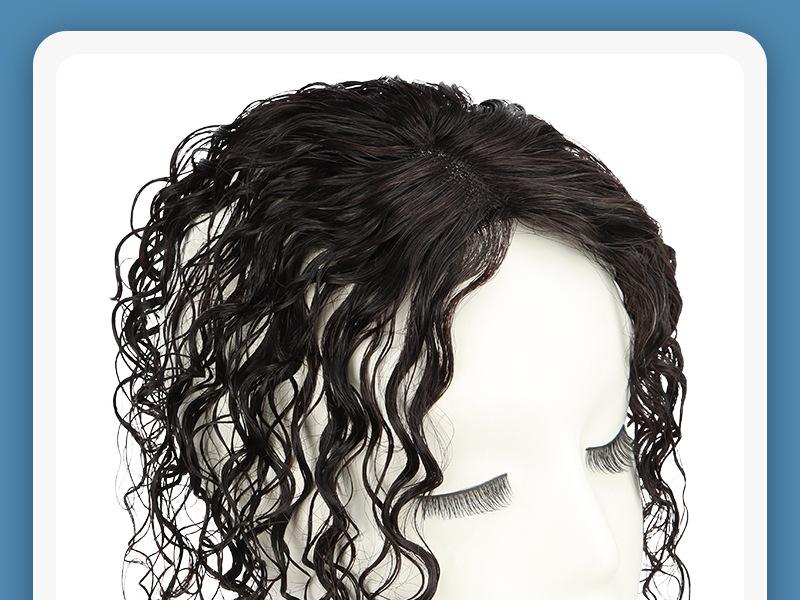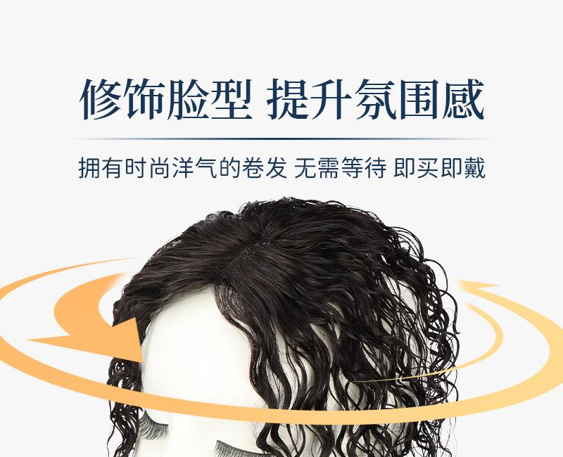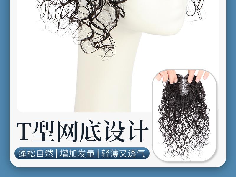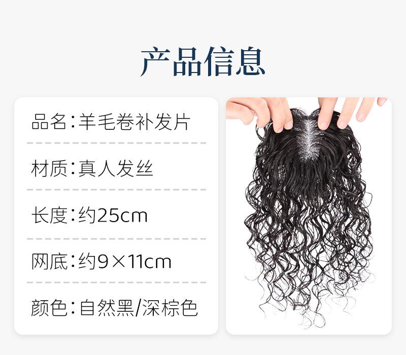Compre Peruca feminina cabelo fino cacheado cabelo real completo cobrindo cabelo branco cabelo fofo aumentando volume elegante lã cabelo curling patch no atacado no Joom.pro