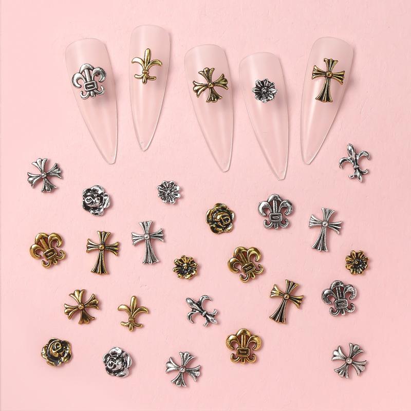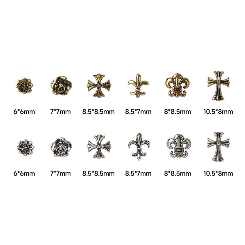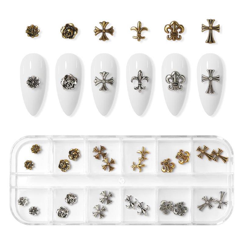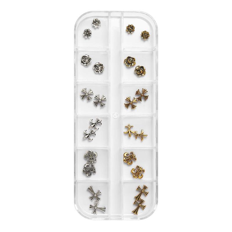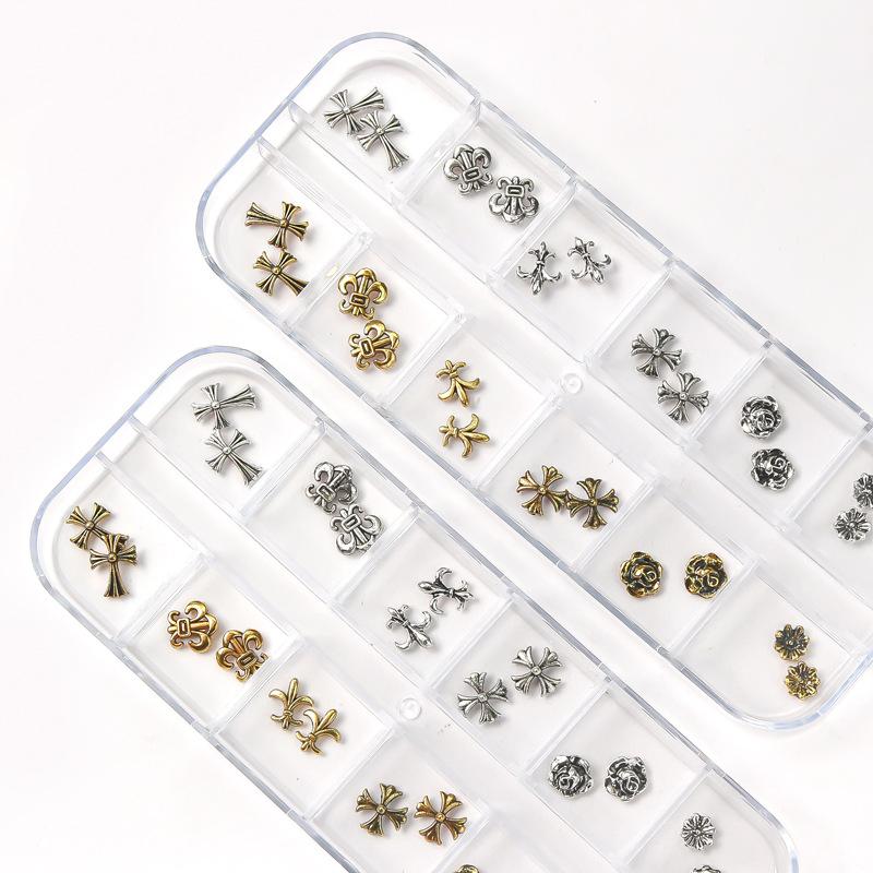 Acessórios Nail Art Estilo Dark Cruz Metal Decorações DIY 12 Grades Strass para Unhas Mistos Atacado