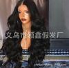 Fábrica em estoque peruca europeia e americana de seda média alta temperatura pequena peruca encaracolada cabelo longo encaracolado capacete de fibra química preta em estoque atacado