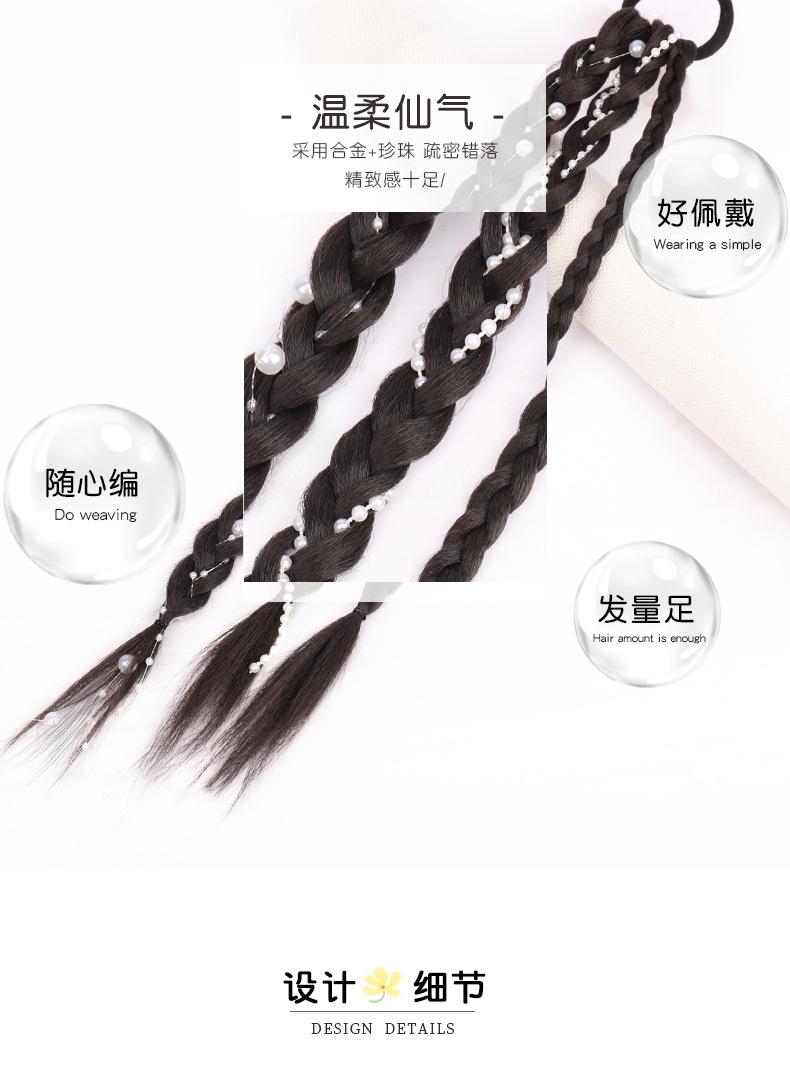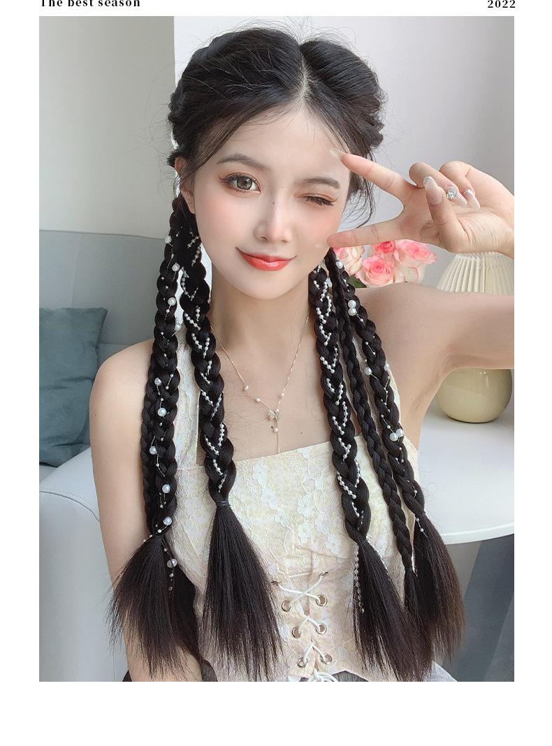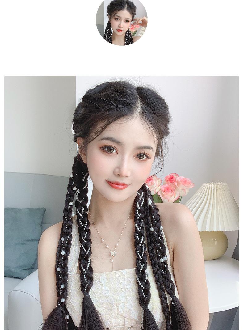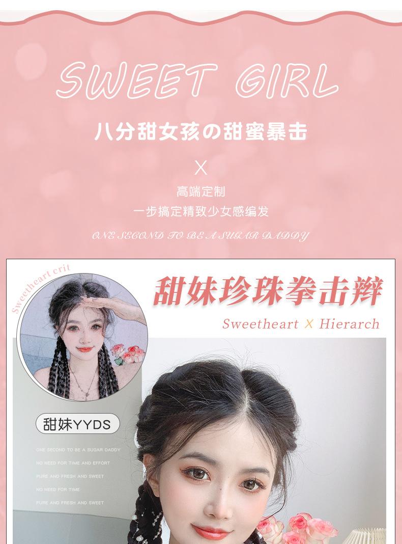 Rabo de Cavalo Boxeadora com Tranças Duplas de Pérolas Rabo de Cavalo Doce e Descolado com Tranças de Pérolas
