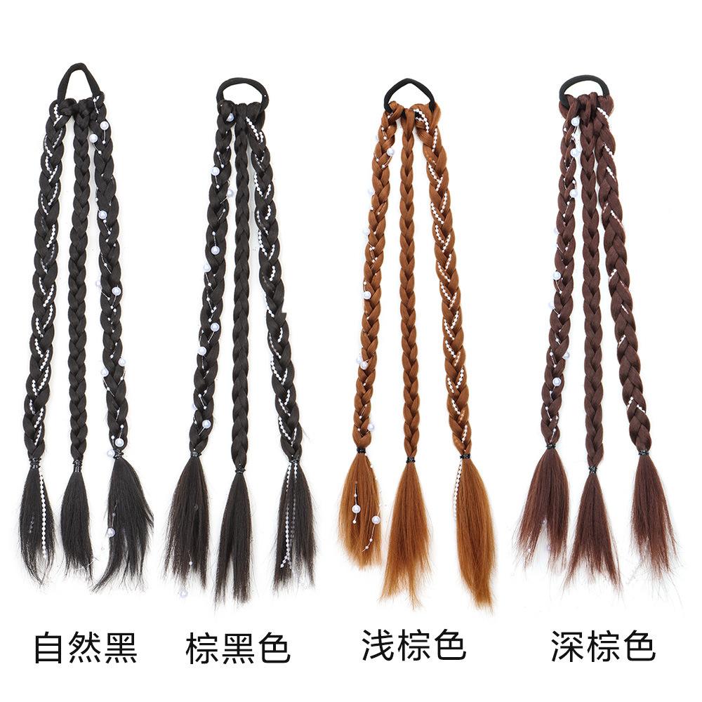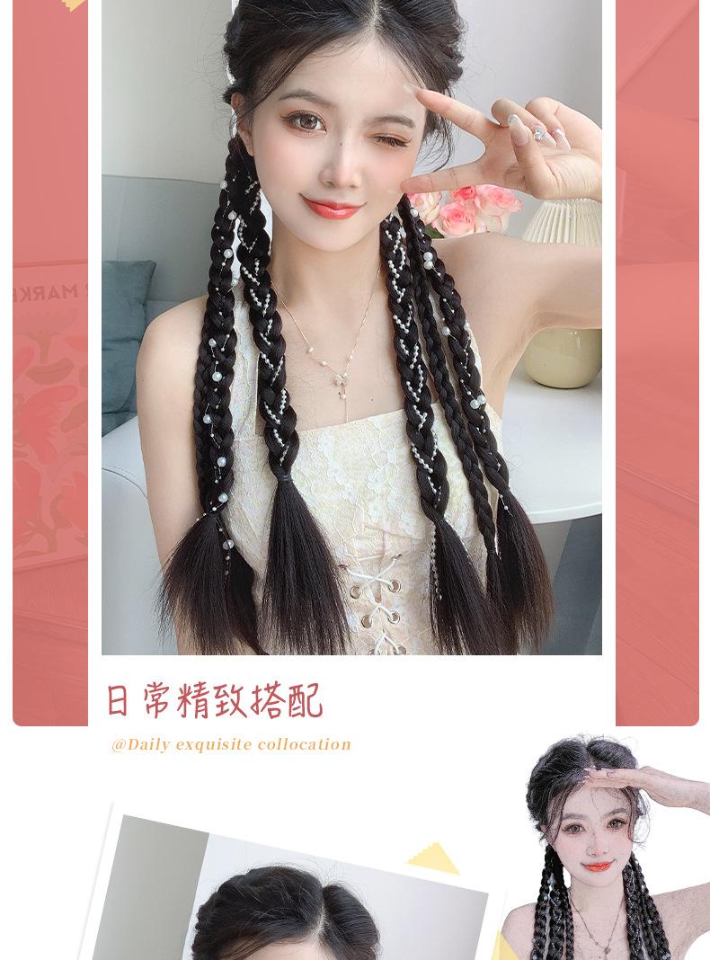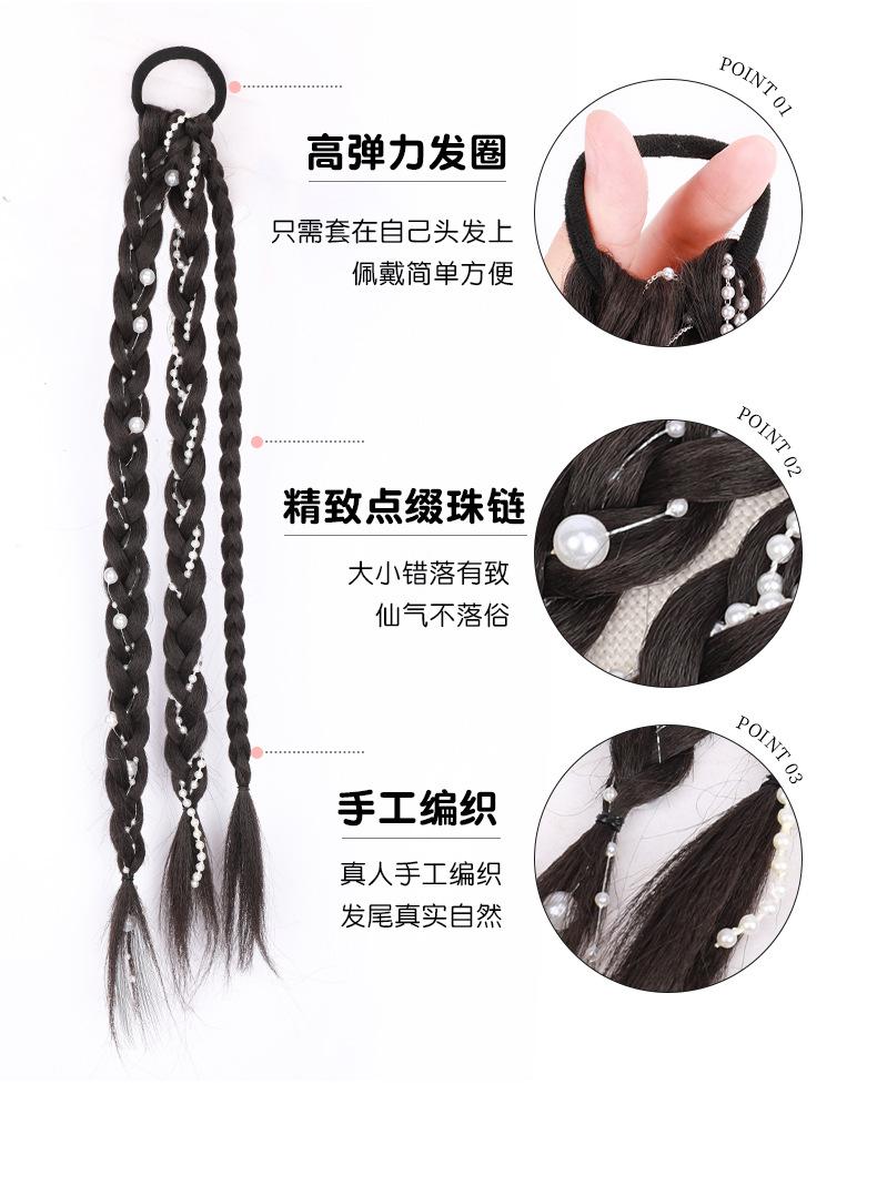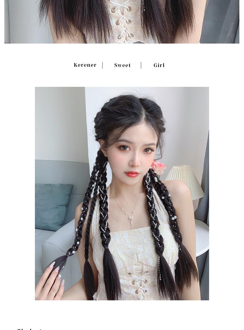 Rabo de Cavalo Boxeadora com Tranças Duplas de Pérolas Rabo de Cavalo Doce e Descolado com Tranças de Pérolas