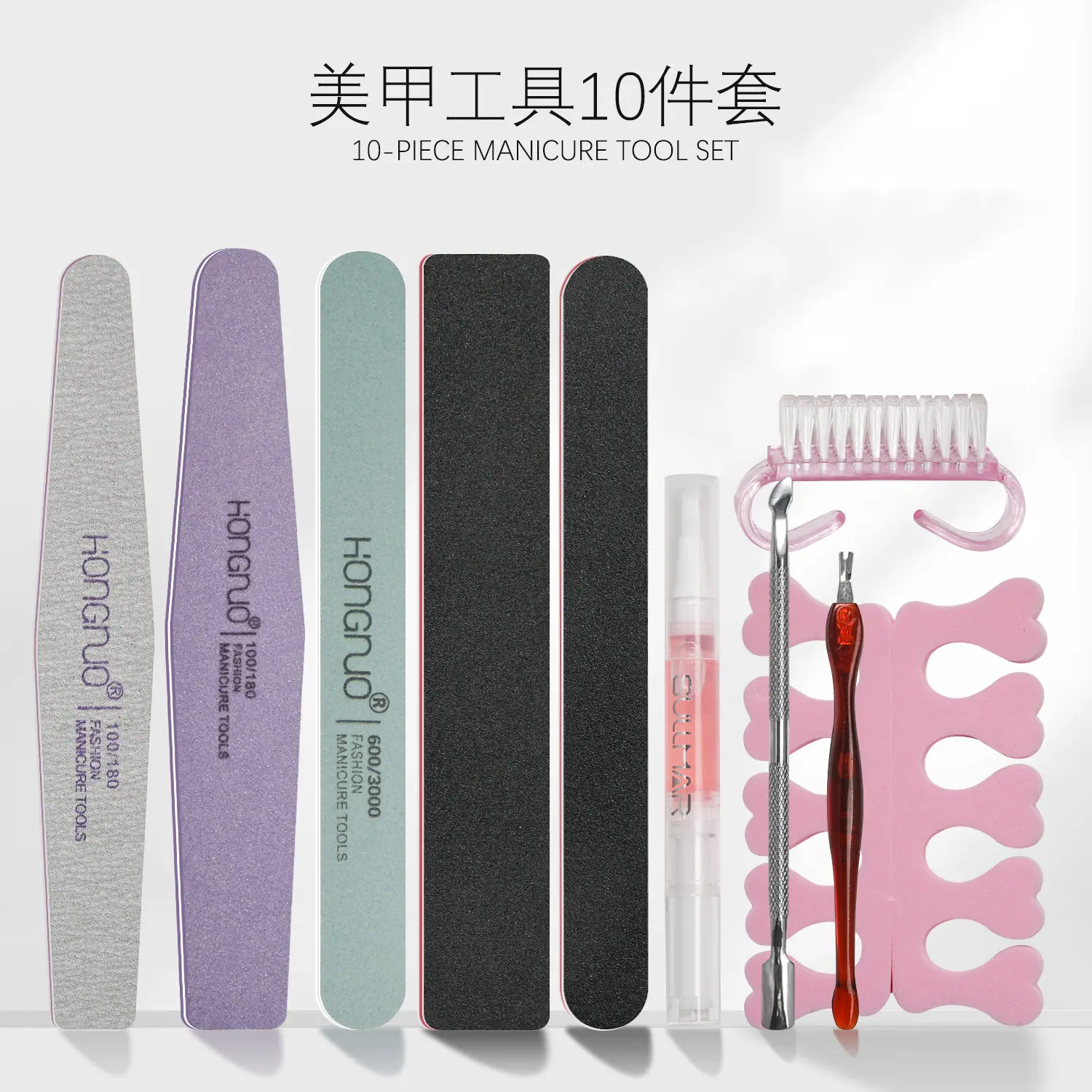 Ferramentas para unhas, tira de polimento para unhas, tira de lixa dupla face, lixa de esponja, conjunto de 10 peças para polimento de unhas