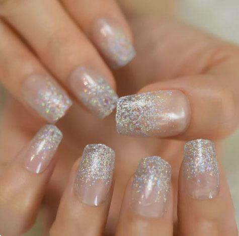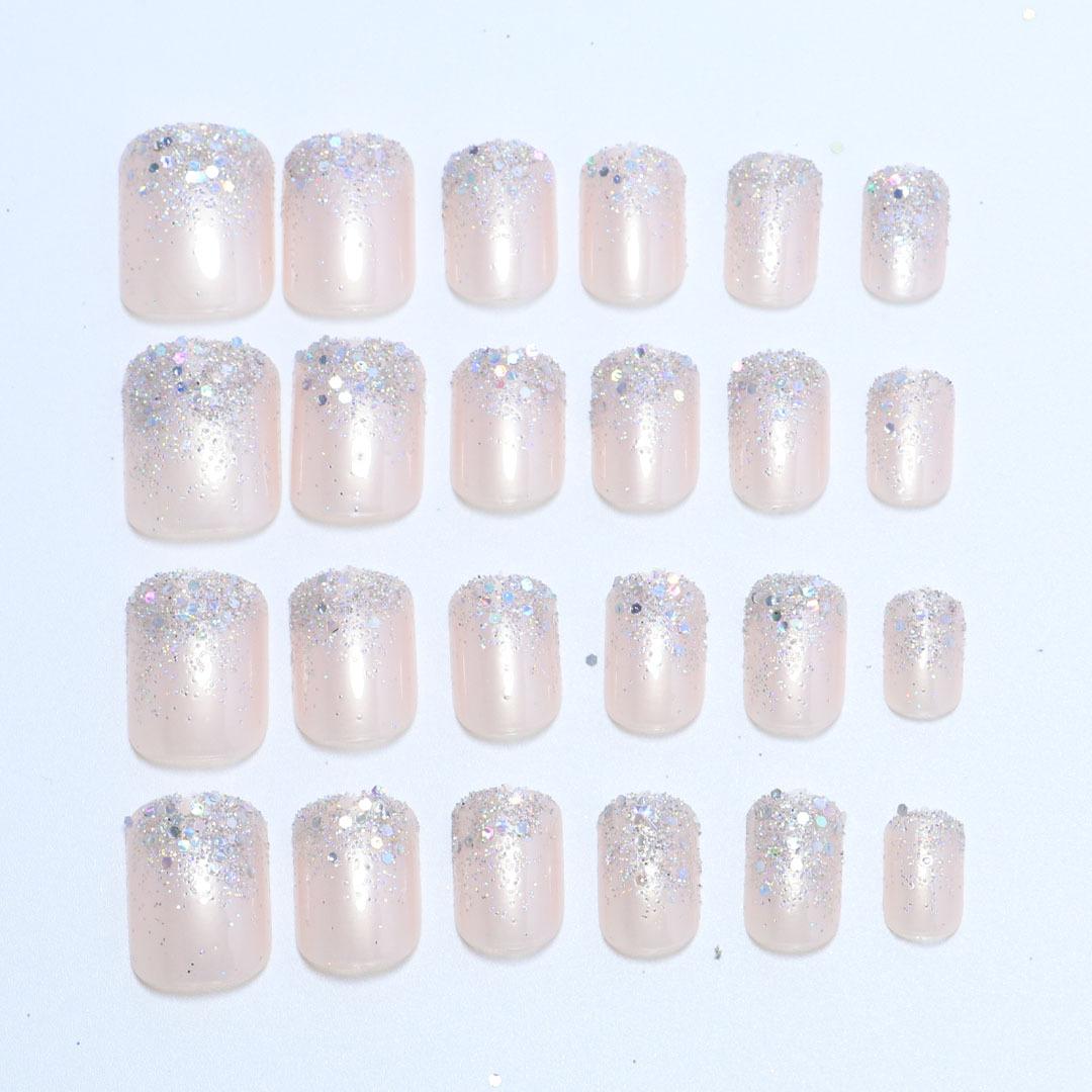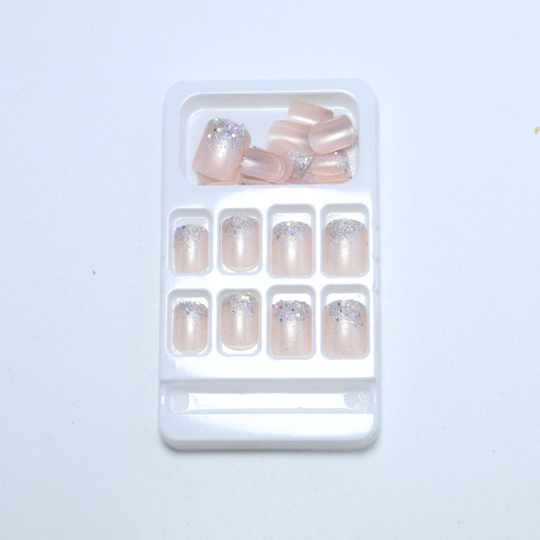 Adesivo de Unha com Glitter Usável Manicure Francesa Adesivo para Unha Curta Unha Postiça Atacado Transfronteiriço Unhas Acabadas