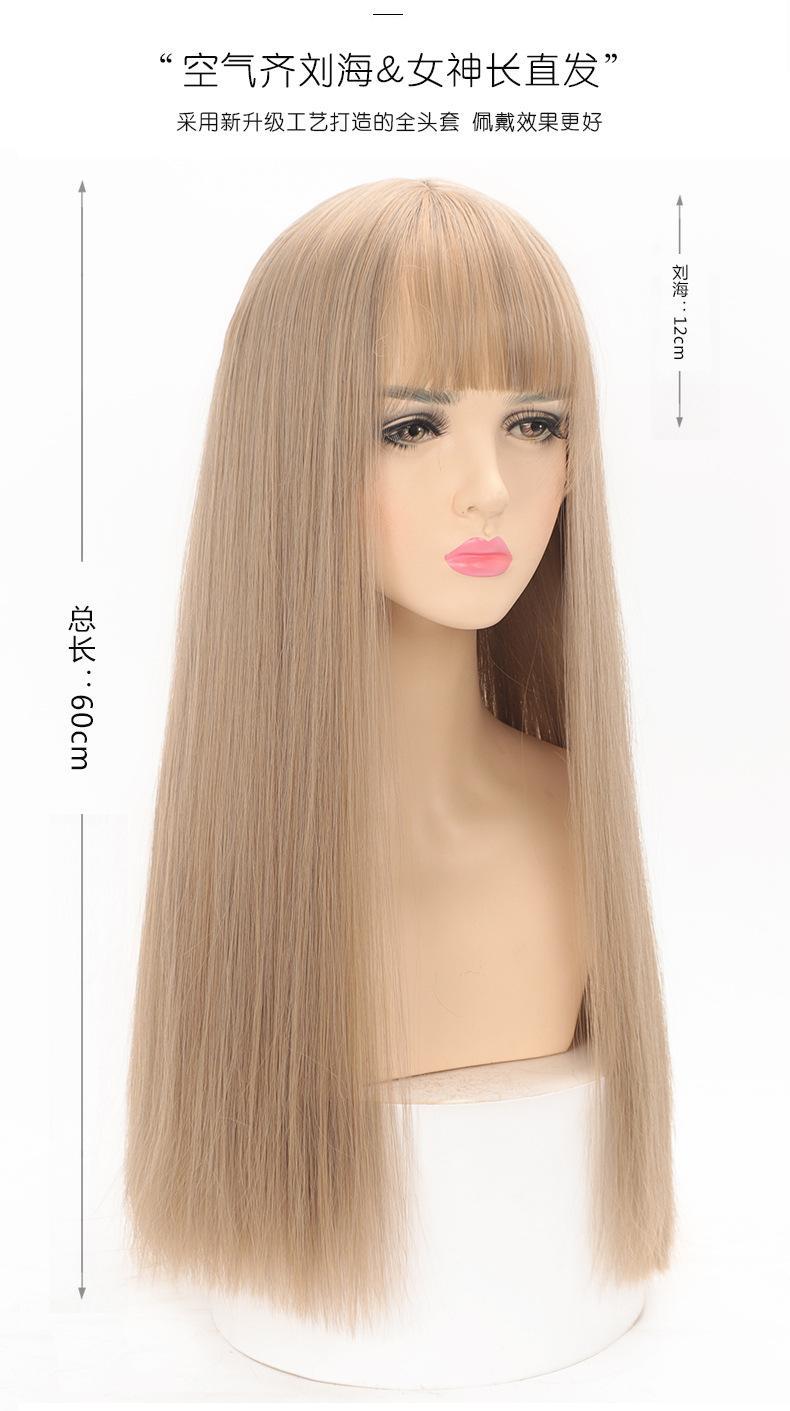 [Atualização de rede elástica] peruca feminina de cabelo longo, atualização natural, cabeça cheia, franja de ar, cabelo longo e liso, rede natural vermelha
