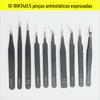Pinças para Nail Art Aço Inoxidável Ponta Reta Cotovelo Pinças de Precisão Antiestáticas Clipe Preto Broca Ferramenta de Unha Feita à Mão