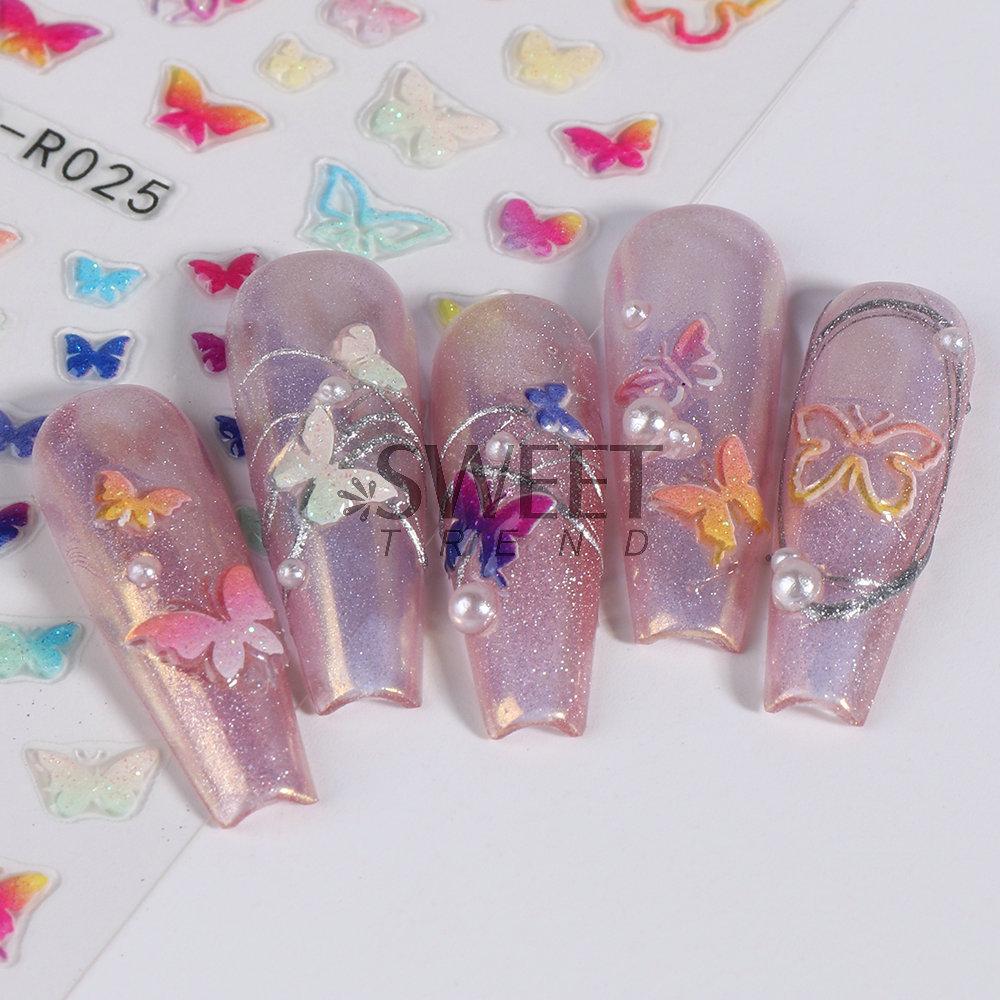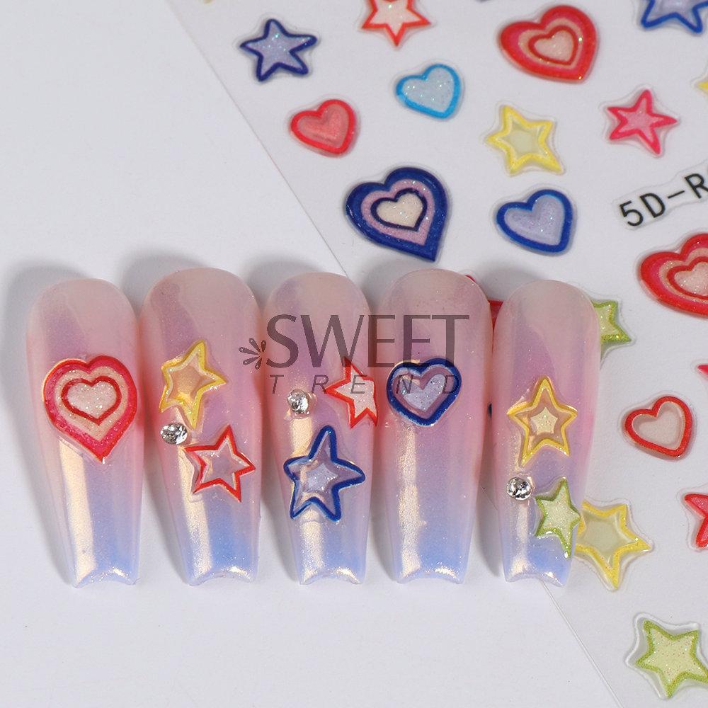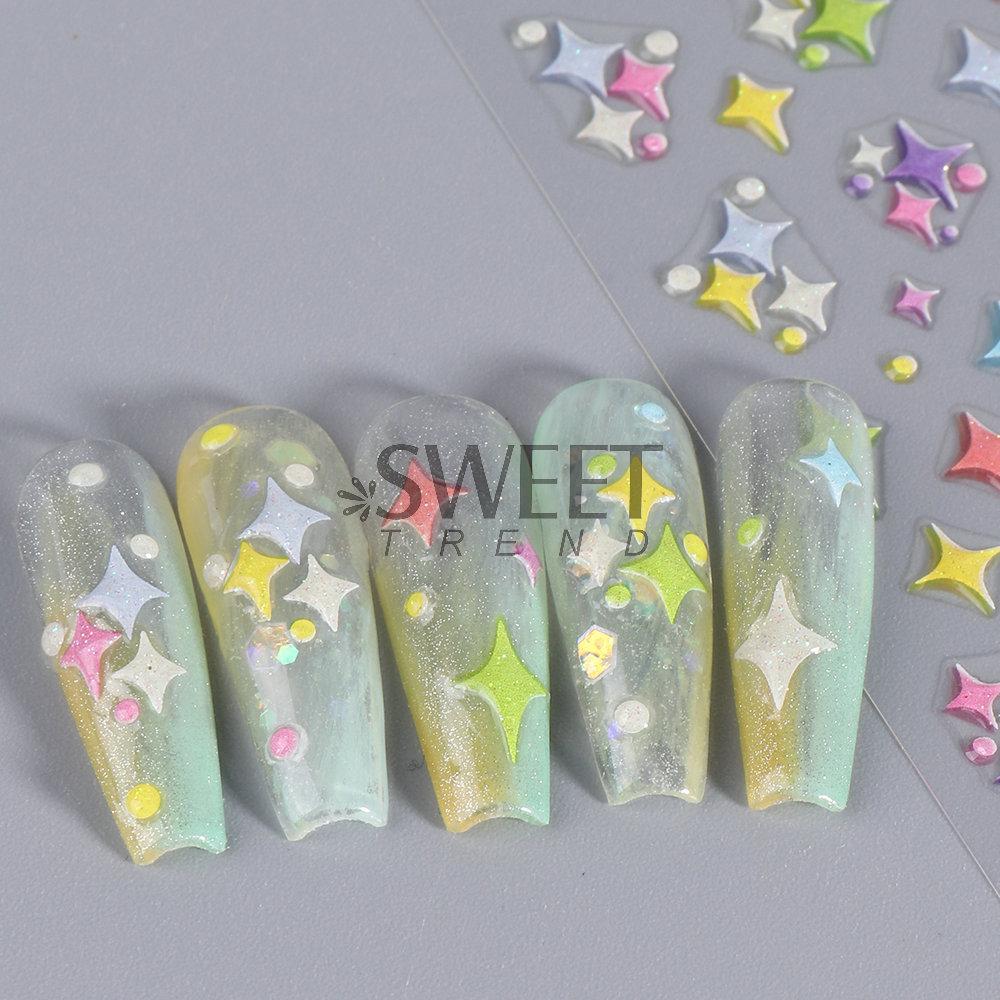 Novos adesivos de unha por atacado novo ofício 5D tridimensional soft candy stickers cinco pontas estrela borboleta adesivos adesivos de unha