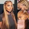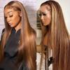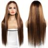 Europeia e americana popular peruca de renda frontal mulheres ponto médio tingido longo cabelo liso fofo moda natural conjunto de cabelo completo Venda por atacado
