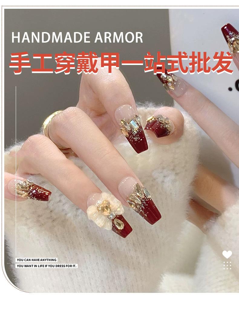 Adesivo de unha francês longo de desgaste de vidro Jinyu artesanal produto acabado prego de desgaste branco de alta qualidade