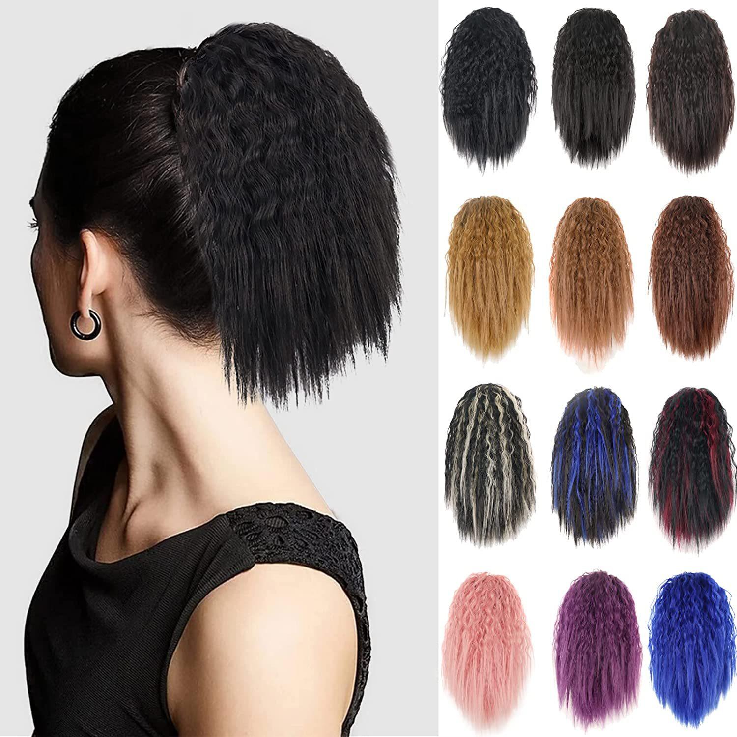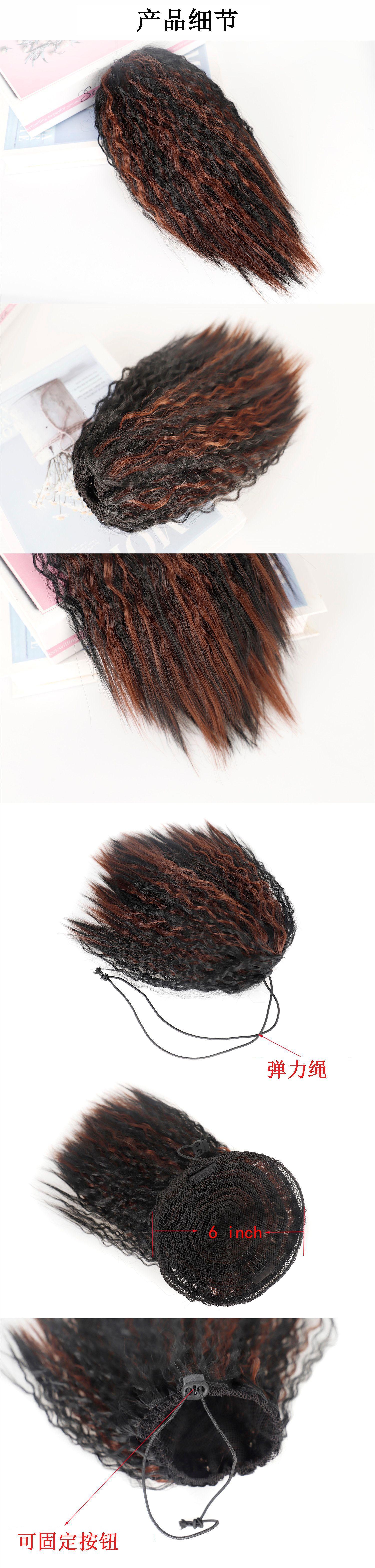 Nome do produto: Peruca curta com cordão e permanente de milho, rabo de cavalo
