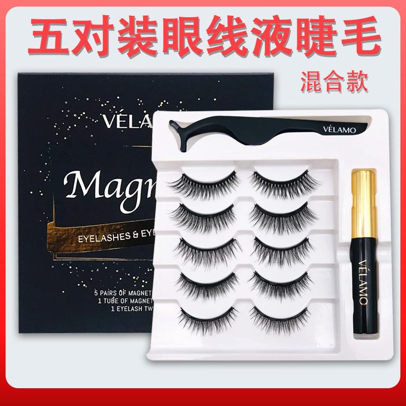 Cinco pares de cílios postiços magnéticos mistos, grossos e naturais, sem cola, delineador magnético único, atacado de fábrica