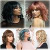 Peruca mulheres cabelo curto bobo cabeça redonda rosto ar franja milho perm preto curto cabelo encaracolado clavícula cabelo lã encaracolado cabeça capa