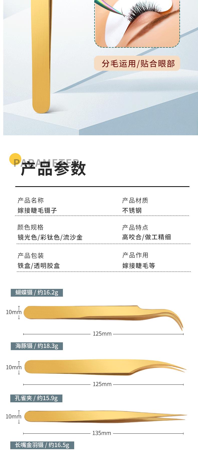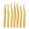 Fábrica de aço inoxidável pinça de cílios postiços curler enxerto de cílios falsos curler golfinho de pena dourada clipe de beleza ferramenta de cílios de trabalhador