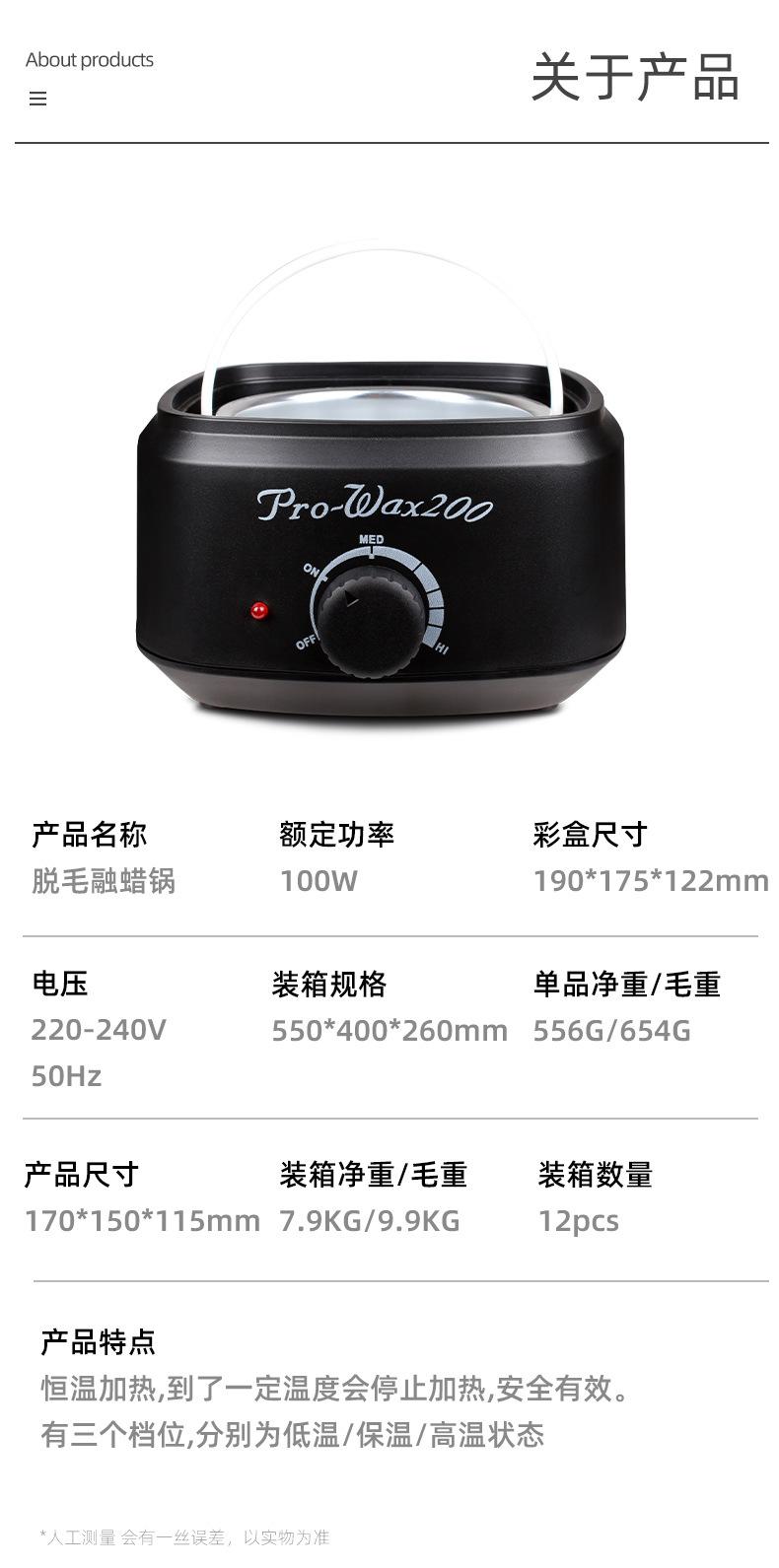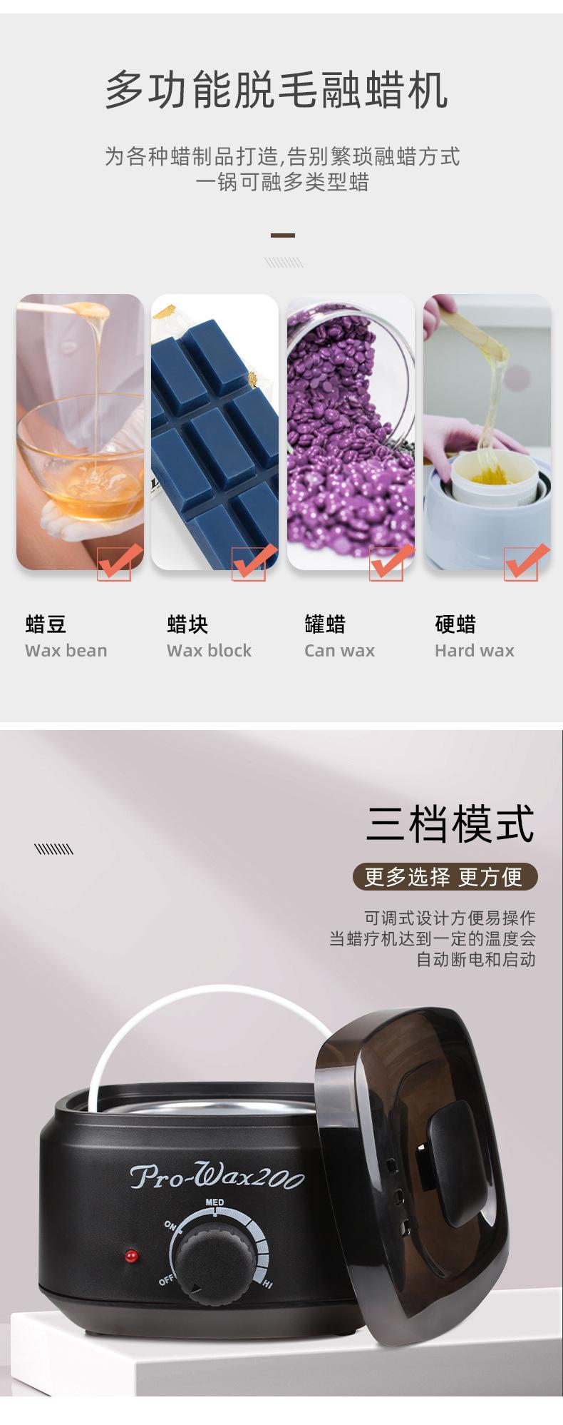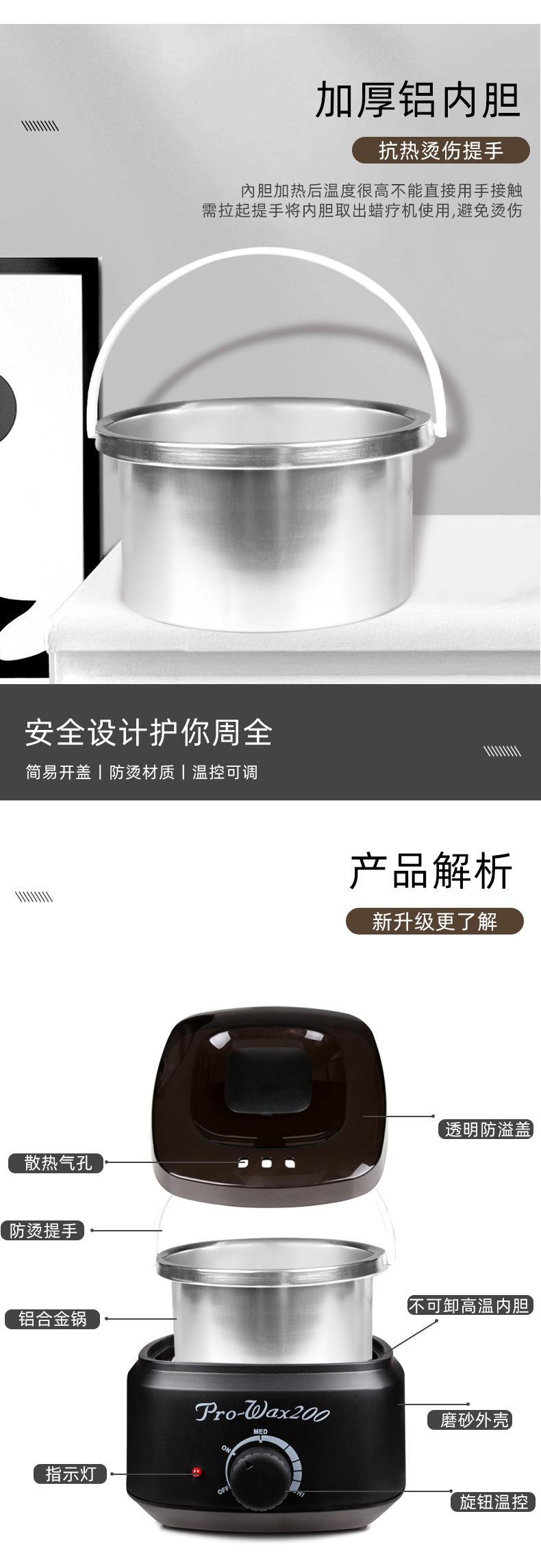 Fornecimento transfronteiriço máquina de depilação preta máquina de cera pro wax200 caldeirão de cera 500c aquecedor rápido máquina de terapia de cera 100W