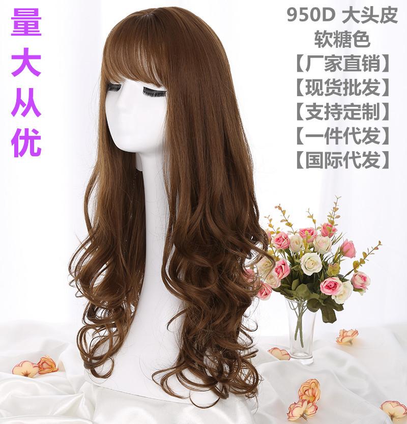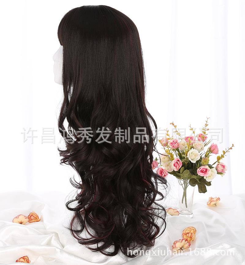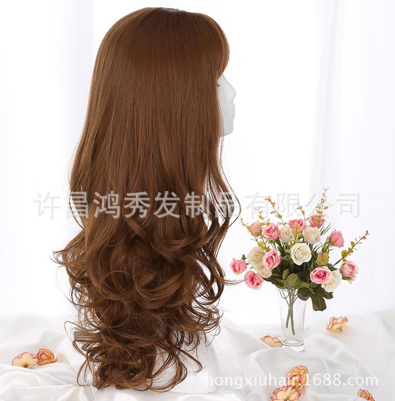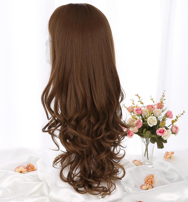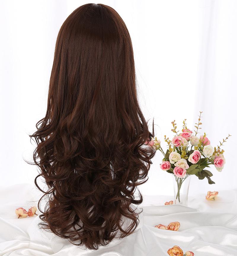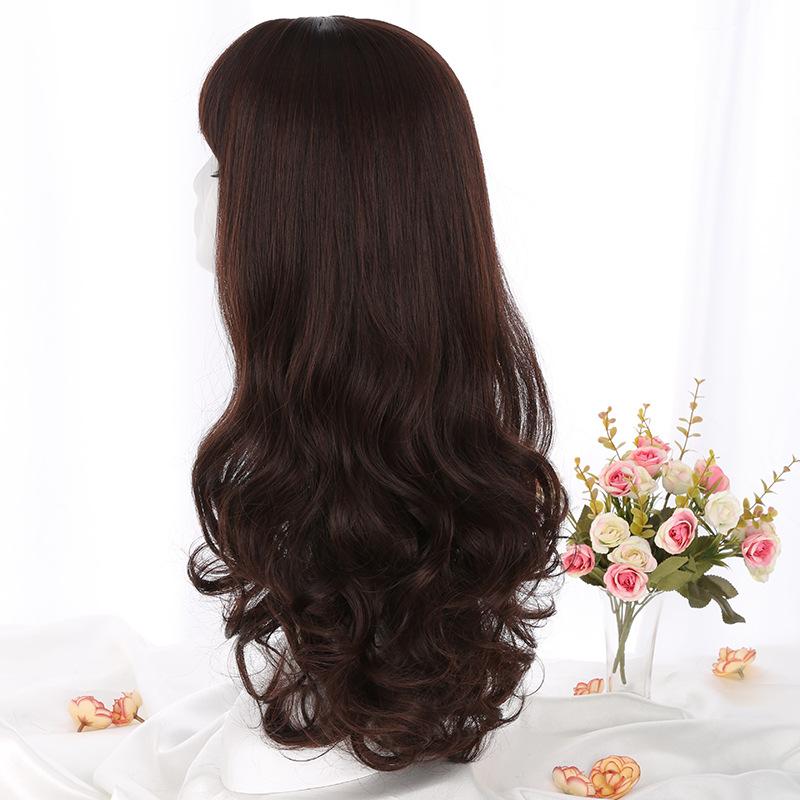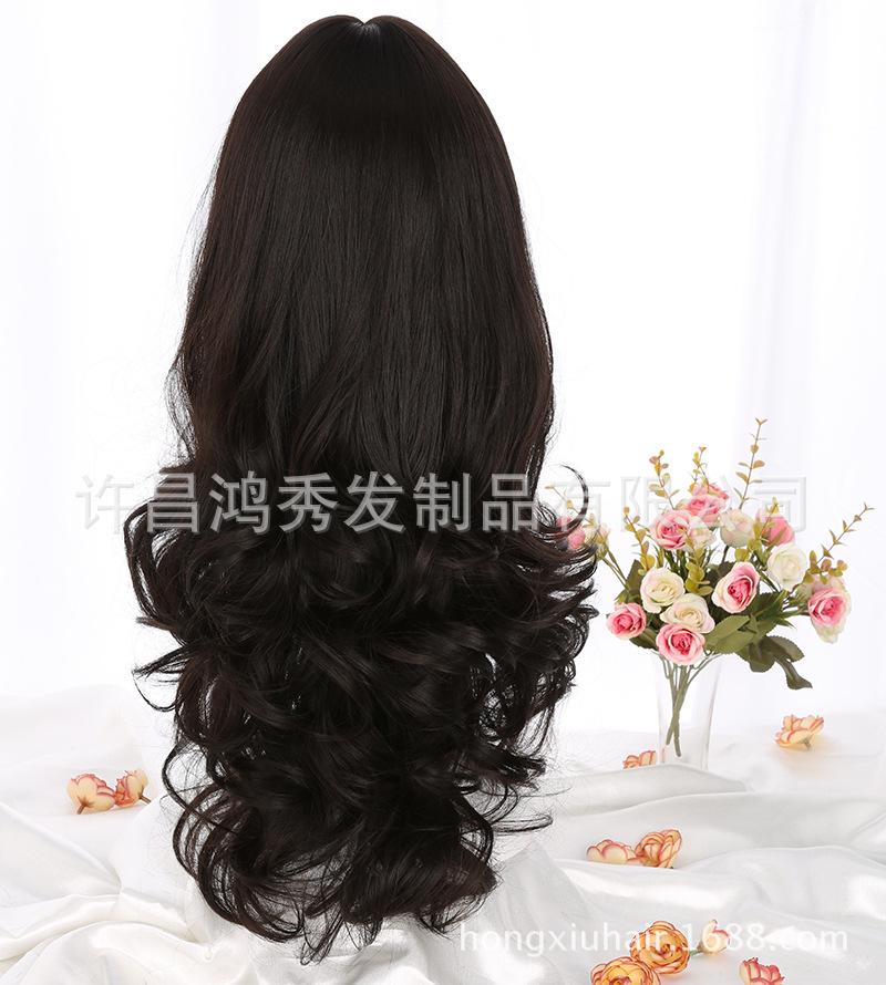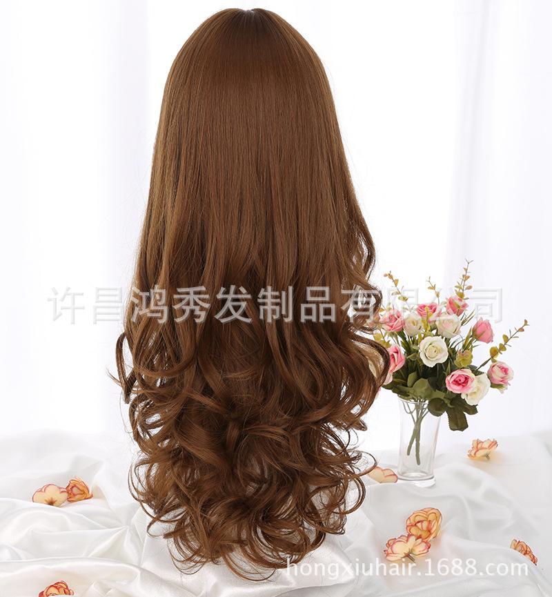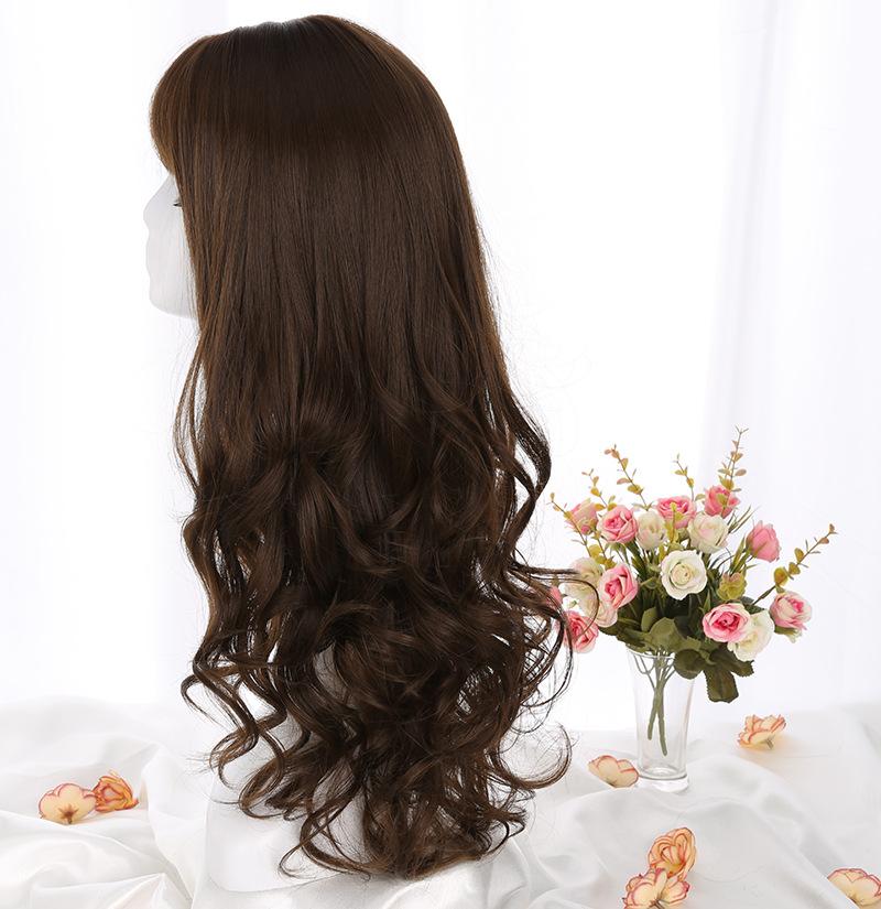 Nome do Produto:Peruca Mulher Cabelo Longo Cacheado Ondas Grandes Franja Ar Cabeça Inteira Couro Cabeludo Grande