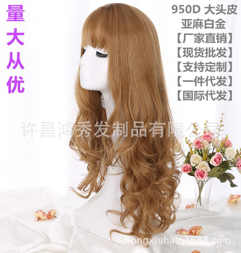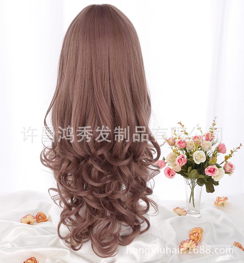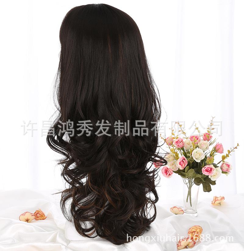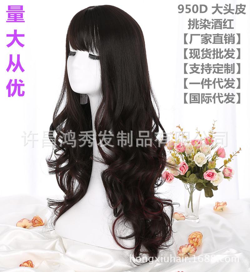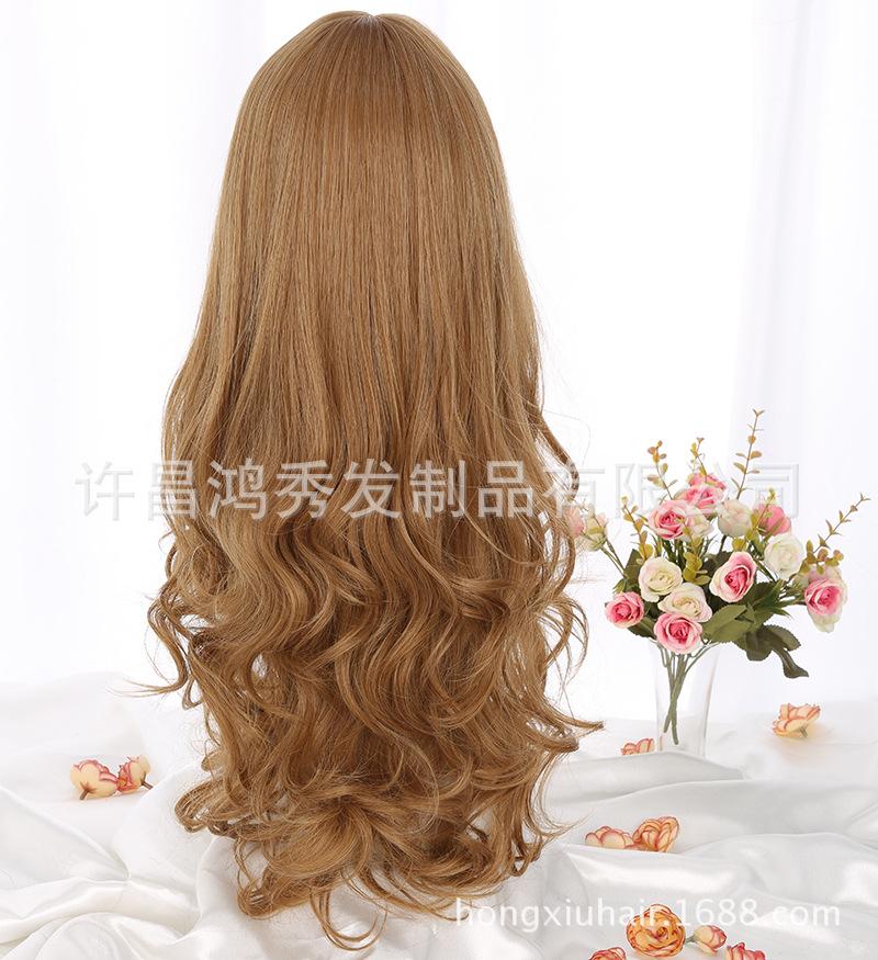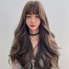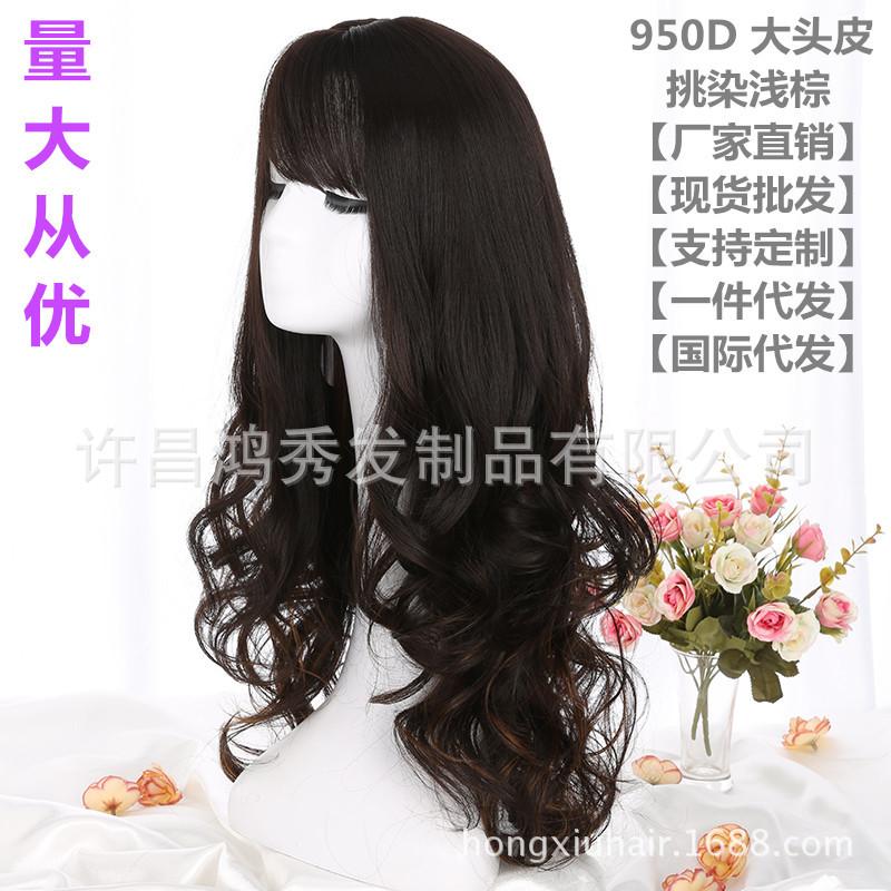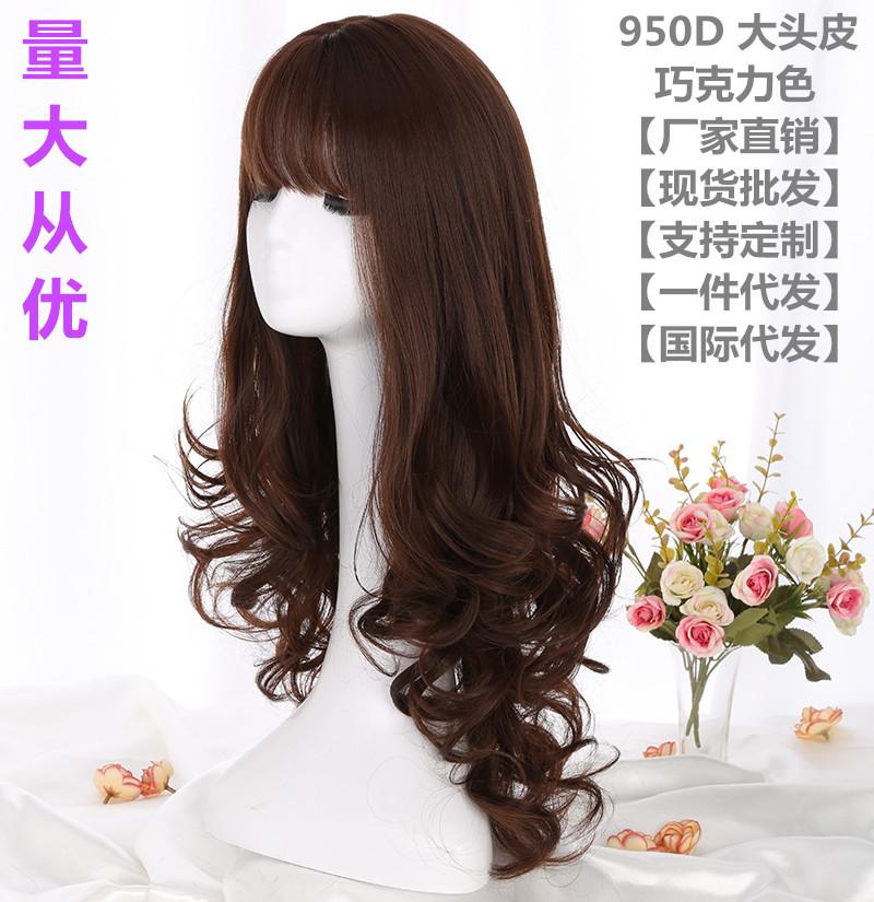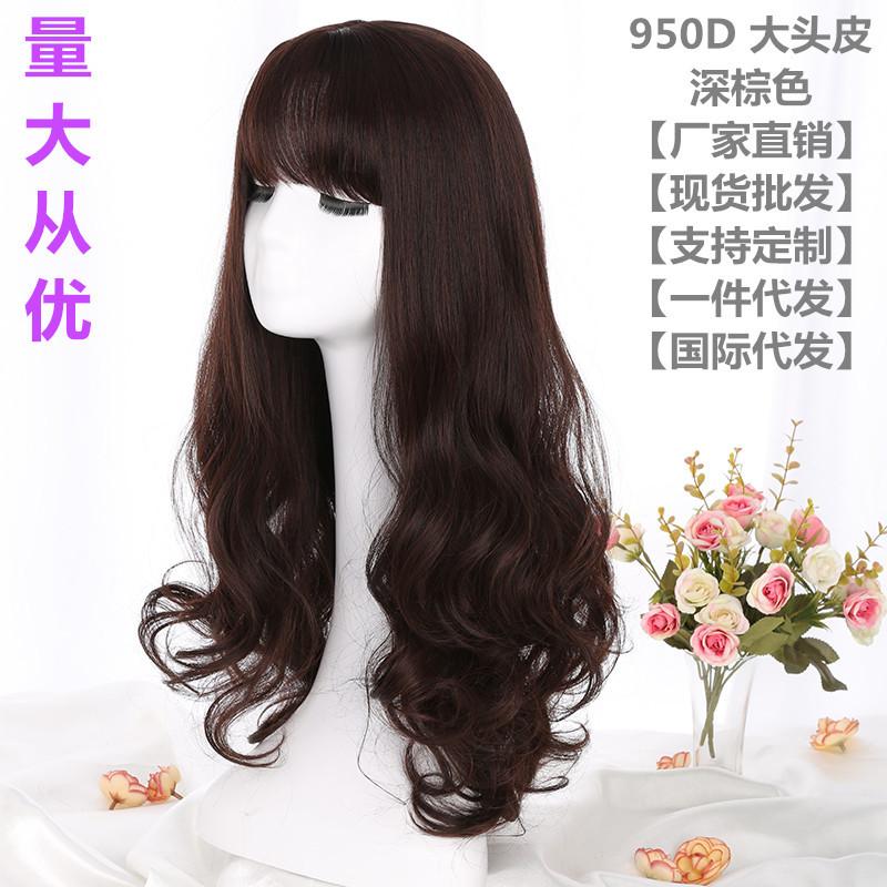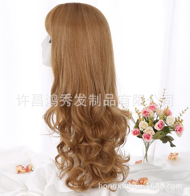 Nome do Produto:Peruca Mulher Cabelo Longo Cacheado Ondas Grandes Franja Ar Cabeça Inteira Couro Cabeludo Grande