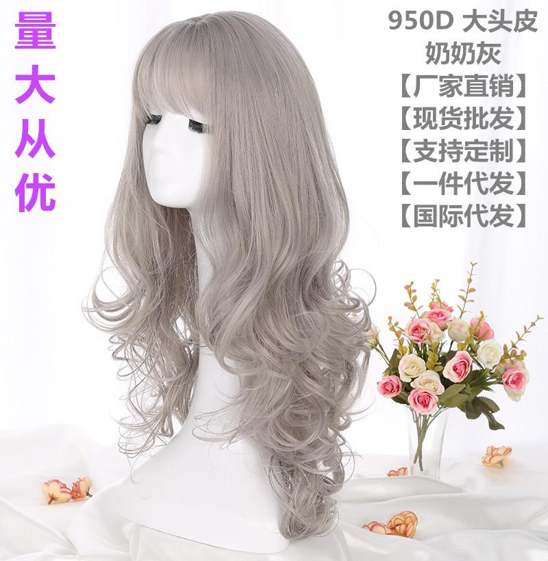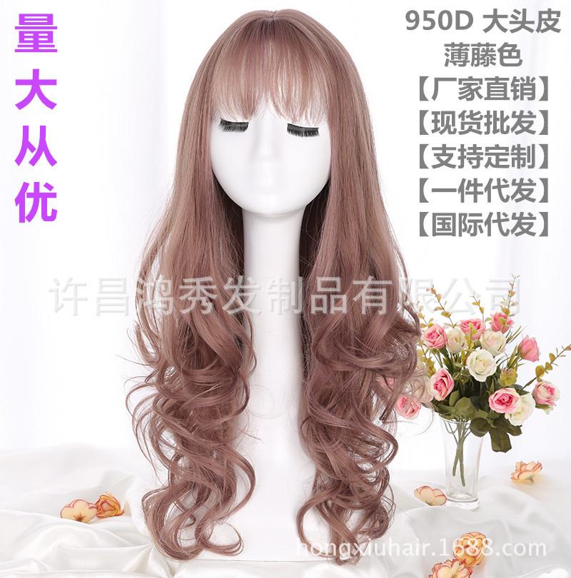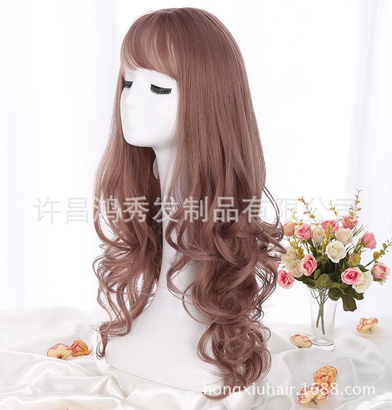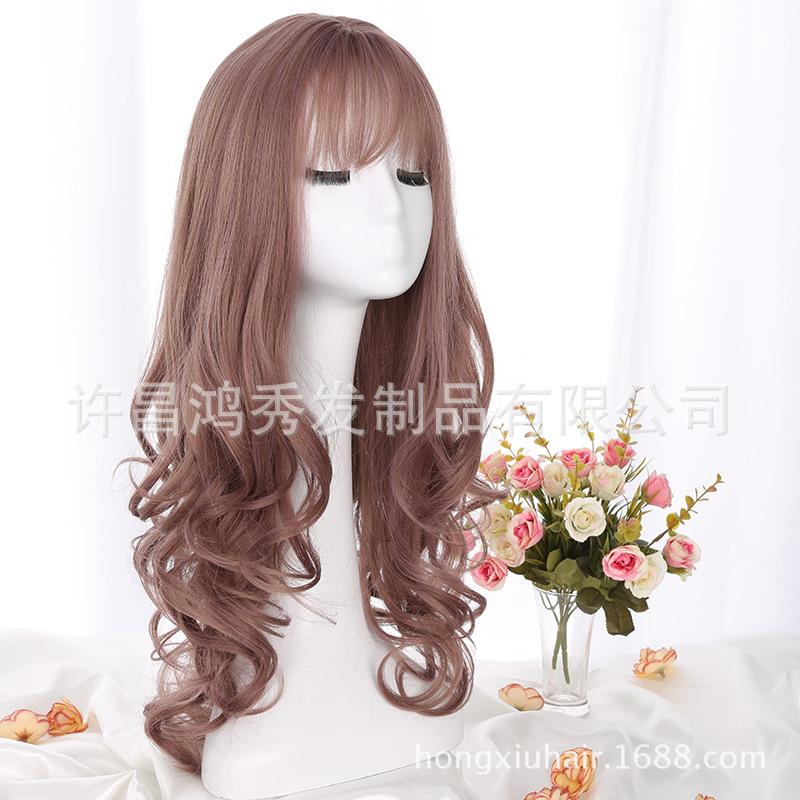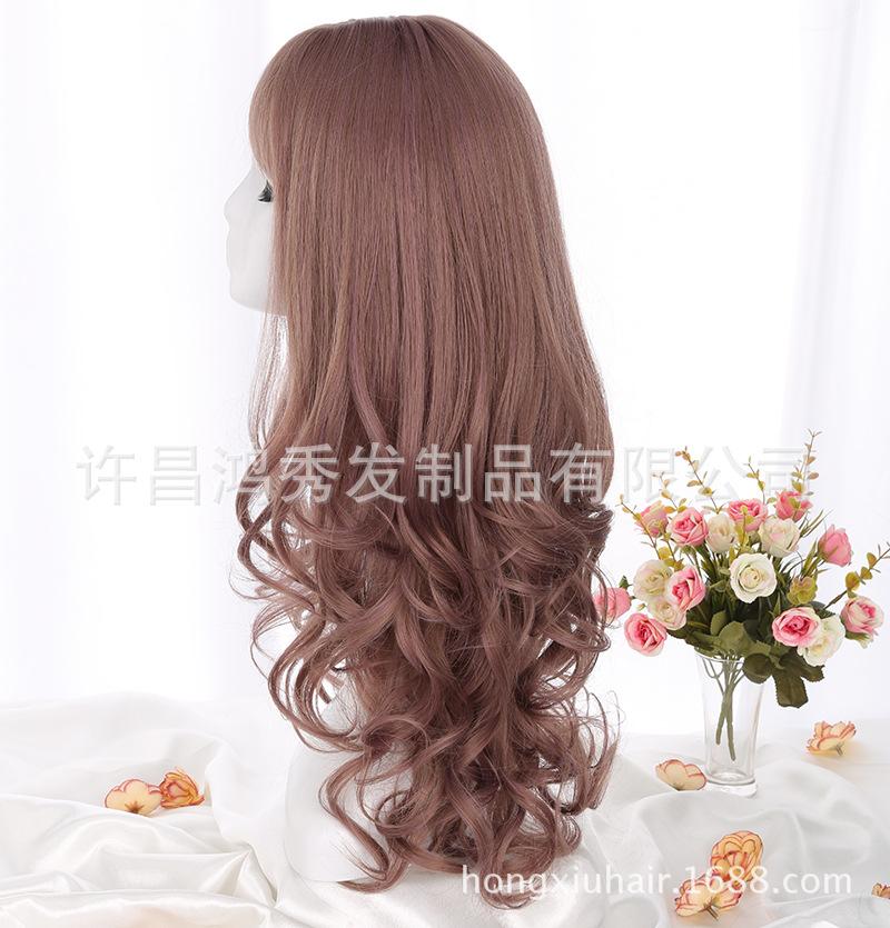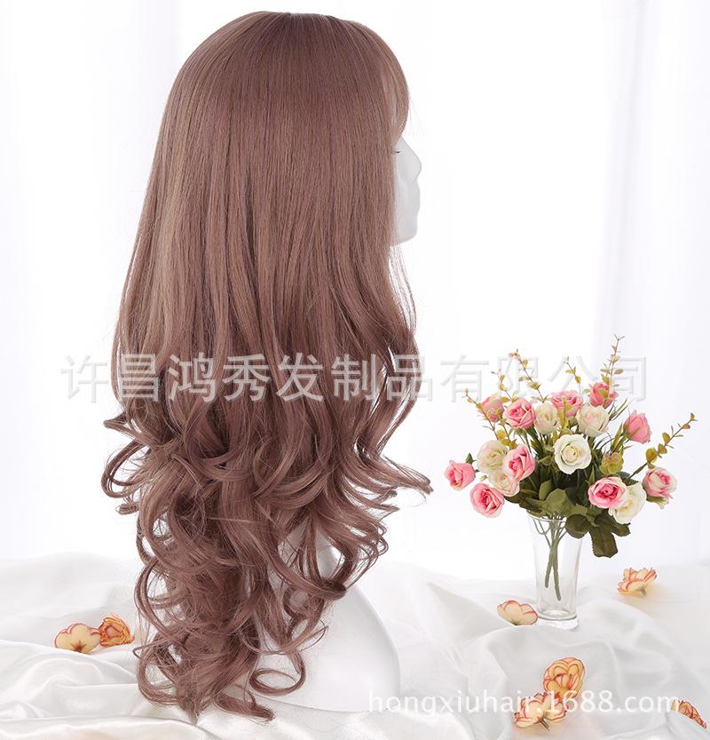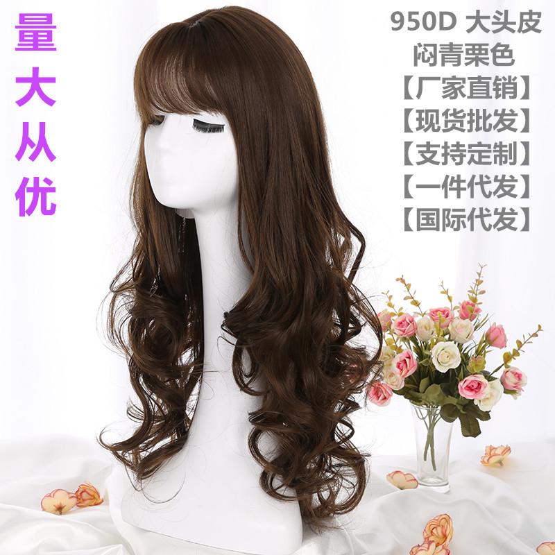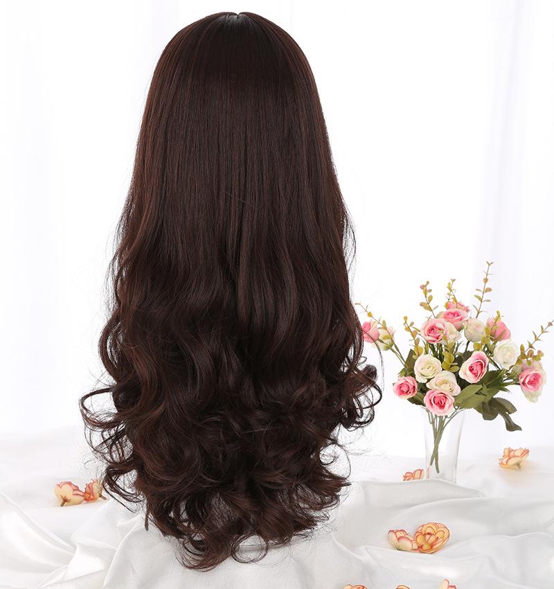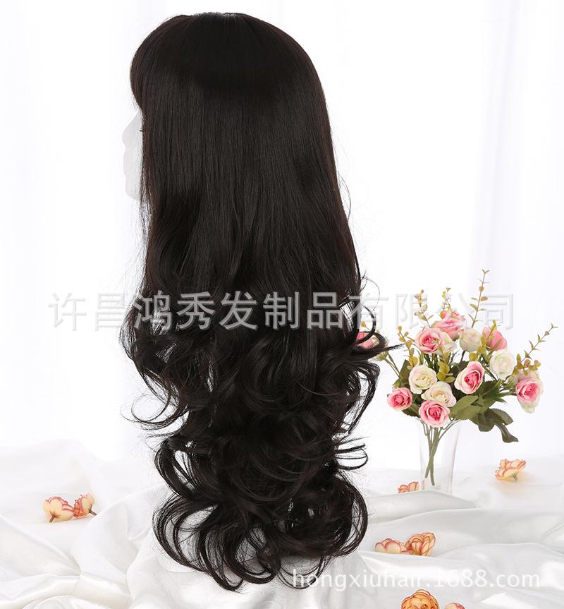 Nome do Produto:Peruca Mulher Cabelo Longo Cacheado Ondas Grandes Franja Ar Cabeça Inteira Couro Cabeludo Grande