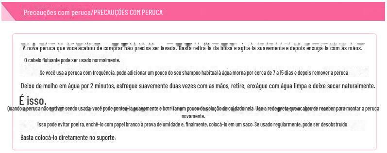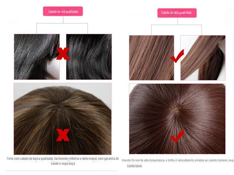 (2) O penteado é diferente da foto: As perucas são itens macios e não podem ser tão constantes quanto o fio de aço. O penteado vai mudar com um pouco de cuidado. Você pode criar o penteado que desejar.