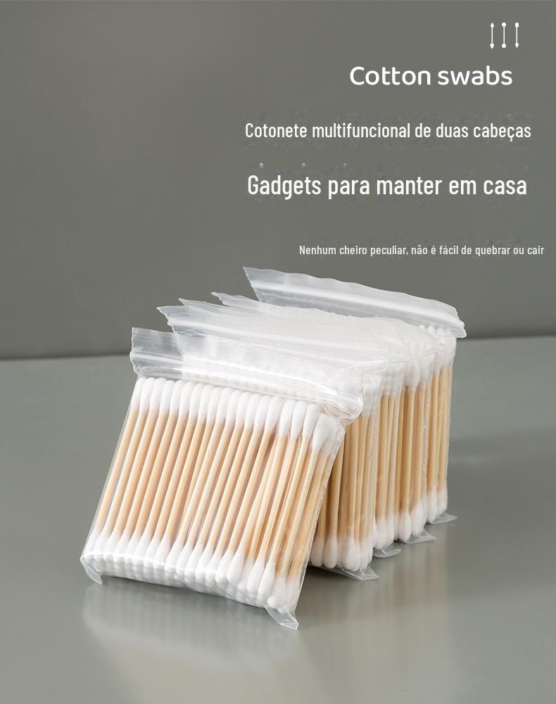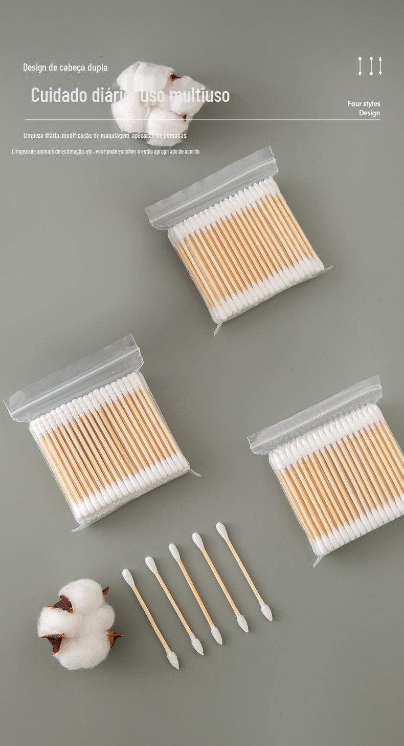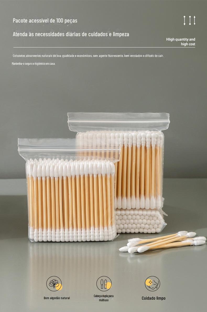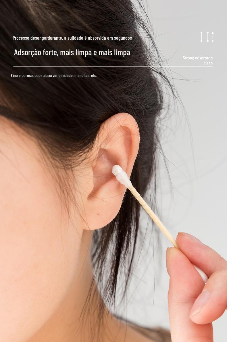 Cotonete de duas cabeças, cotonete higiênico descartável para puxar orelhas, colher para escavar orelhas, cotonete de madeira, bolsa especial para uso doméstico
