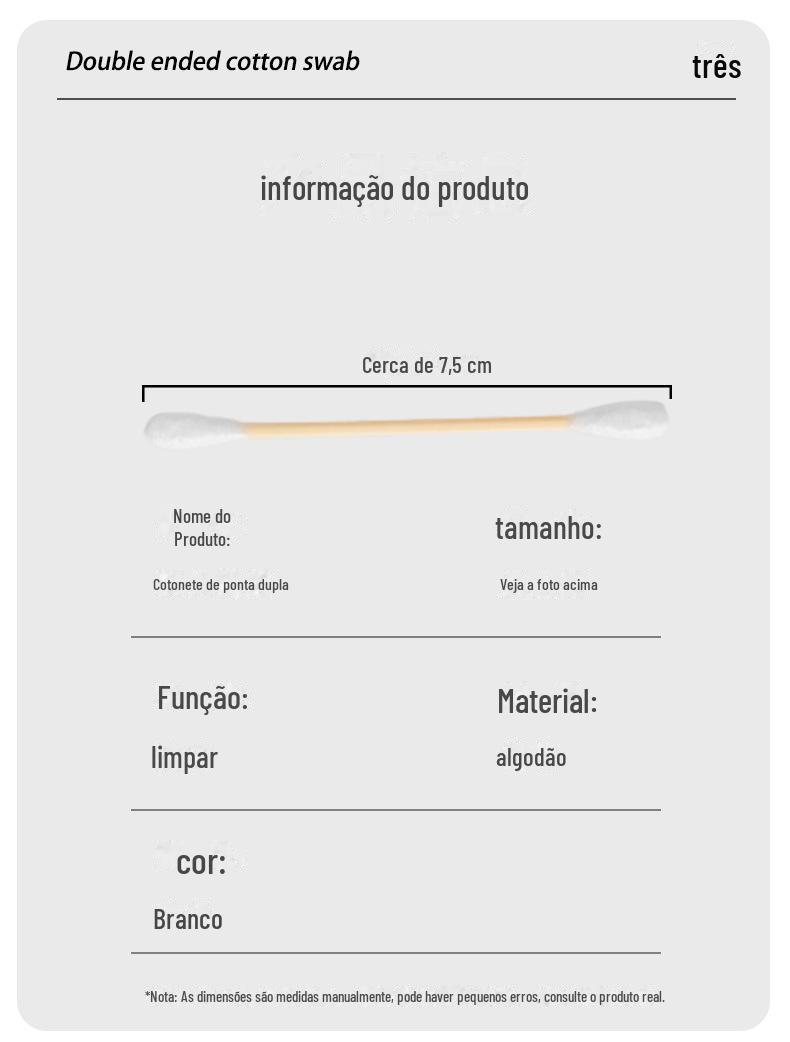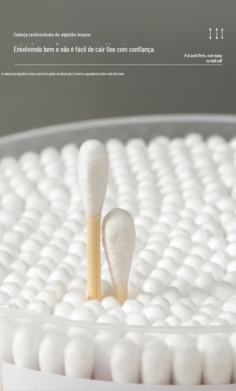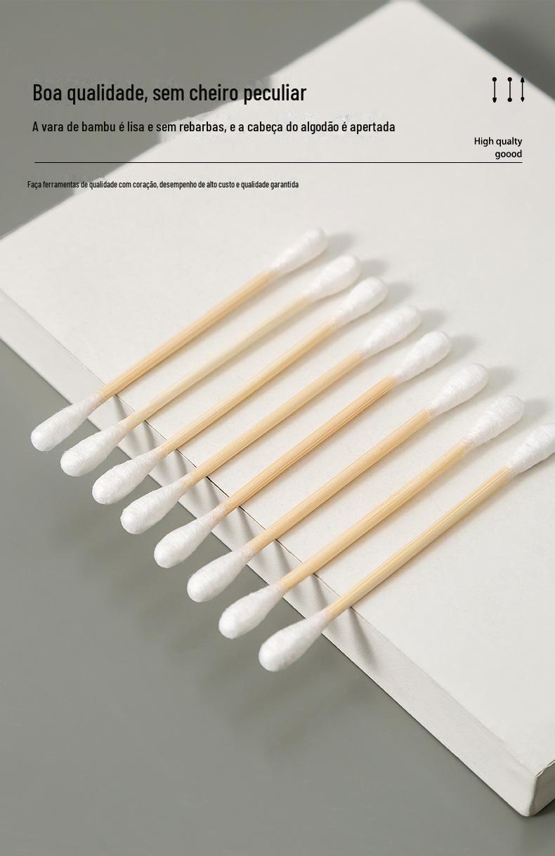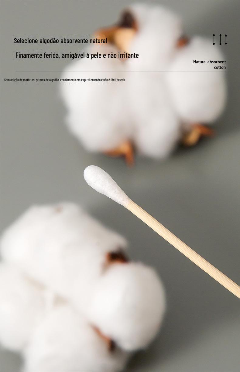 Cotonete de duas cabeças, cotonete higiênico descartável para puxar orelhas, colher para escavar orelhas, cotonete de madeira, bolsa especial para uso doméstico