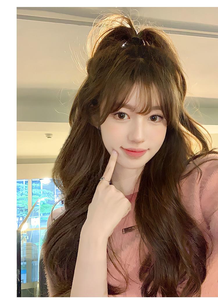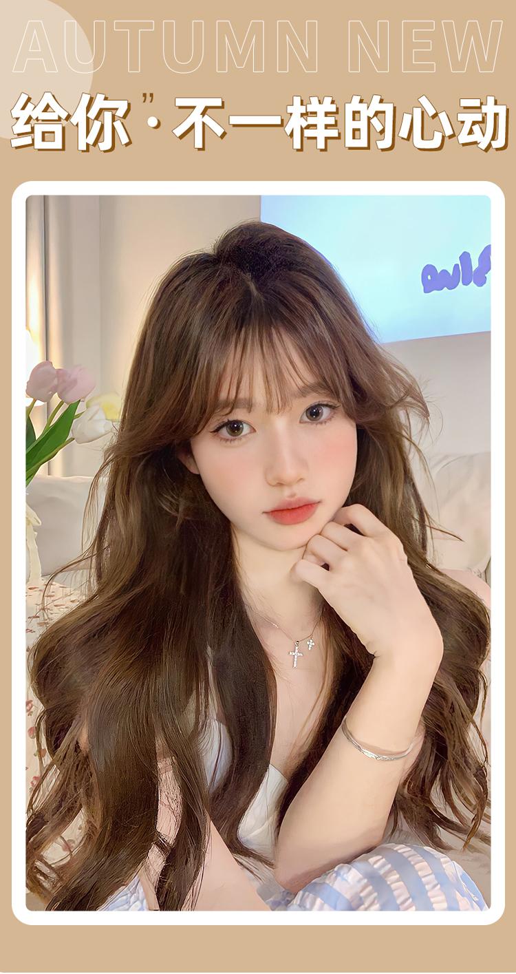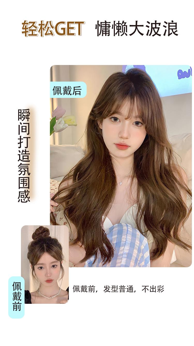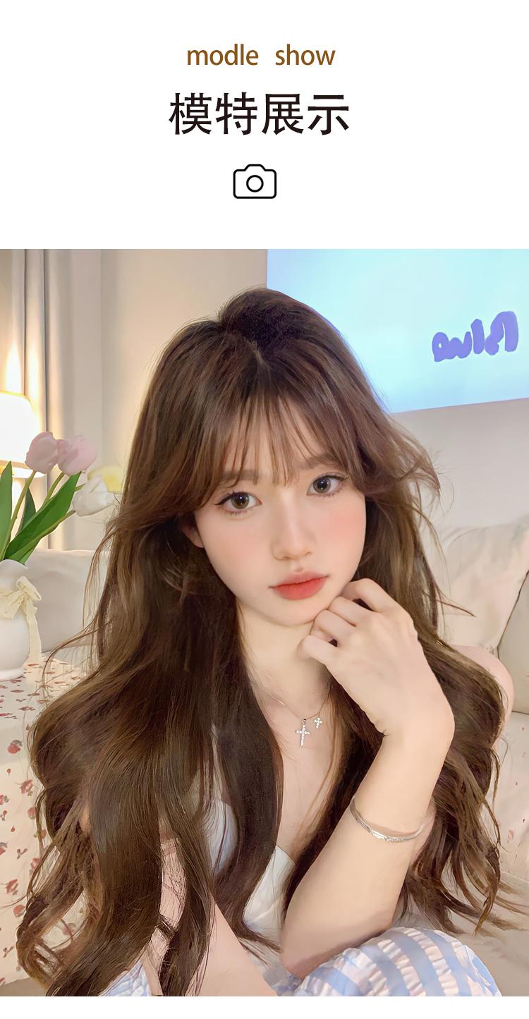 Peruca feminina cabelo longo natural cobertura de cabeça cheia grande onda cabelo longo cacheado comprimento médio cabelo artificial peruca de cabelo humano real completo