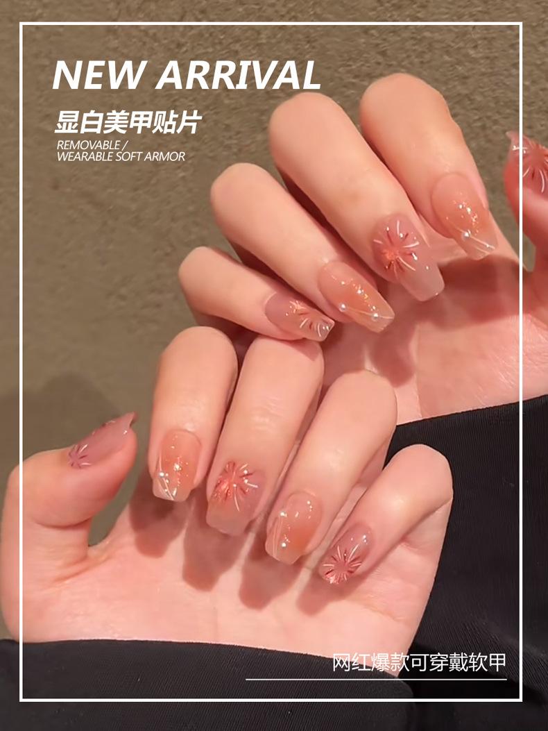Unhas usadas à mão, peça de unha blush degradê, lindo remendo de unha olho de gato, peça de unha destacável finalizada