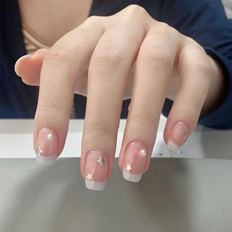 Puro quer usar unha curta ins estilo pérola estrela de cinco pontas adesivo de unha destacável branco unha falsa pedaço de unha atacado