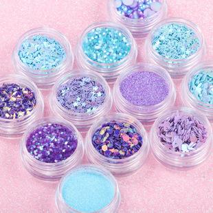 | Novos produtos transfronteiriços para unhas, atacado, lantejoulas mistas, flash, lantejoulas hexagonais, pó de glitter a laser, pó fino brilhante |