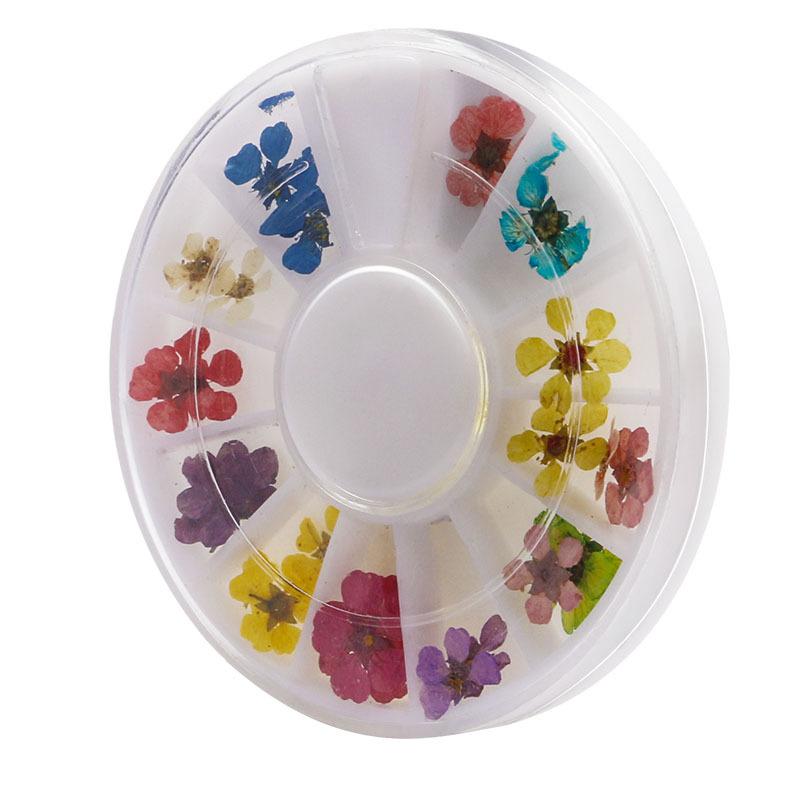 Nome do produto: Arte de unha exclusiva transfronteiriça, nova decoração de unha tridimensional japonesa de 12 cores, acessórios de arte de unha, pequenas flores secas redondas