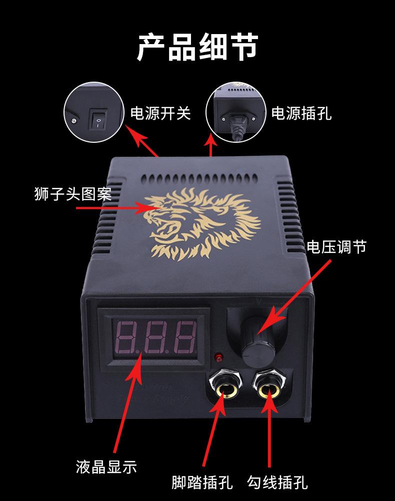 Fonte de Alimentação para Tatuagem Cabeça de Leão Yuan Yun Transformador de Potência para Tatuagem Visor LCD de 3 Dígitos Fonte de Alimentação para Tatuagem Atacado Transfronteiriço