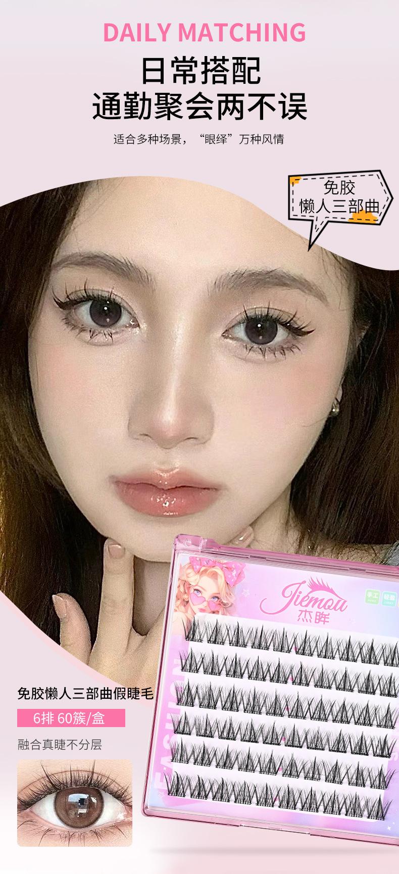 Cílios Postiços Trilogia Estilo Preguiçoso Sem Cola com Cabelo Macio, Cílios Pure Lust, Cílios Postiços Naturais Inteligentes