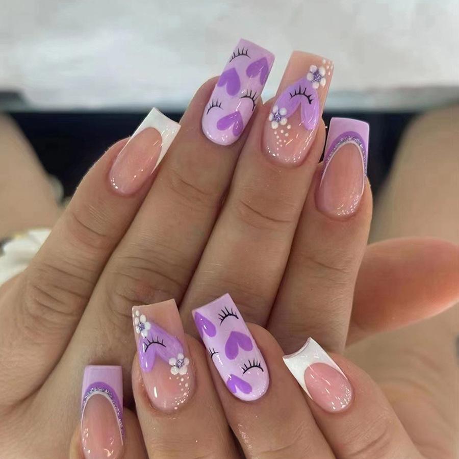 Europeu e americano pequeno estilo fresco roxo amor olhos flor padrão simples francês doce bonito moda usar armadura