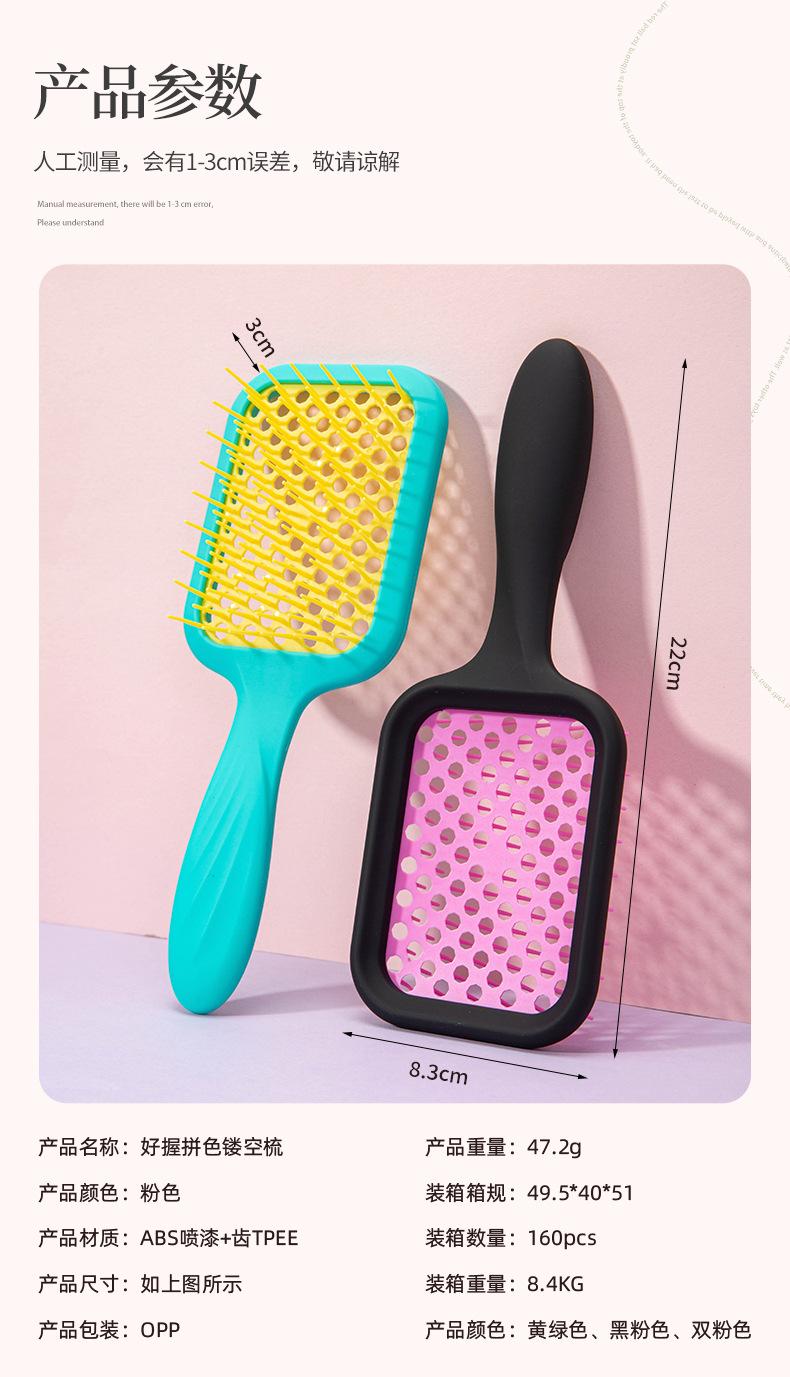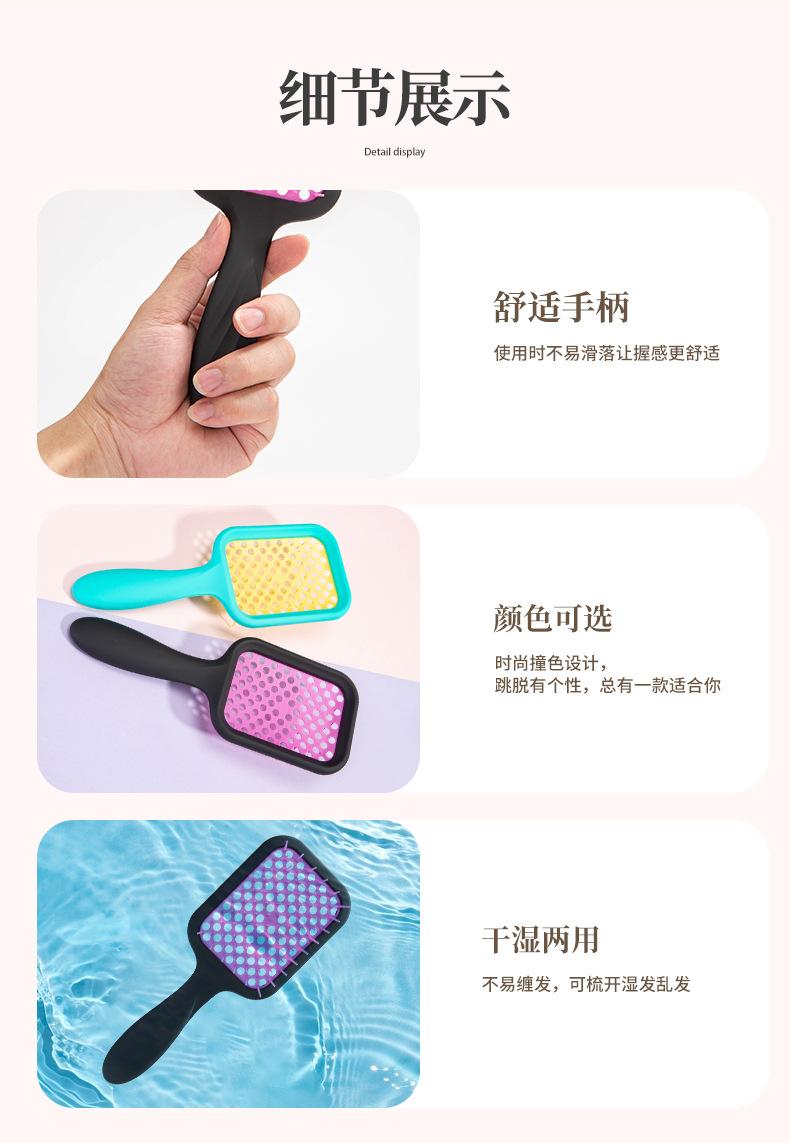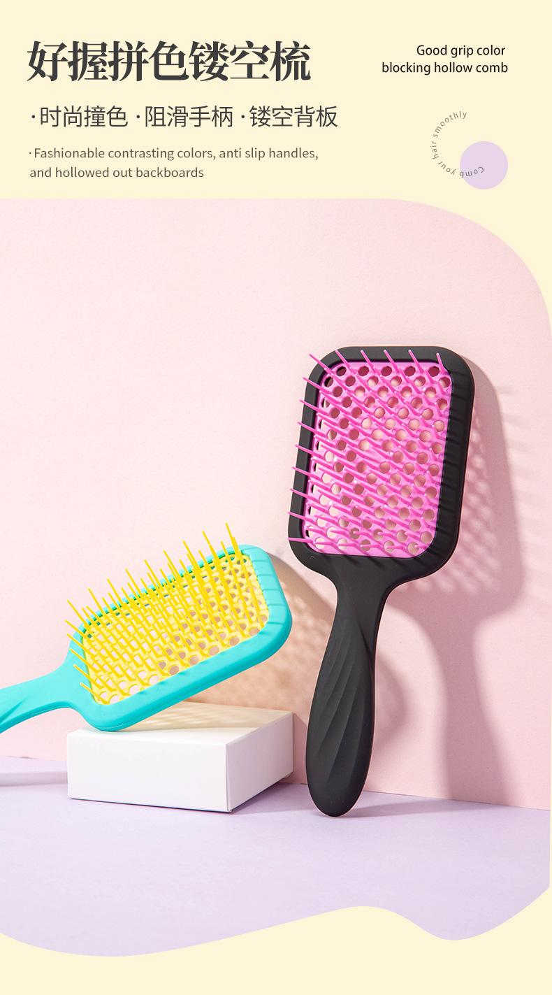 Compre Pente Quadrado Vazado Colorido de Alto Nível para Massagem no Couro Cabeludo e Limpeza, Pente para Estilizar em Casa, Ferramenta de Cabeleireiro no atacado no Joom.pro