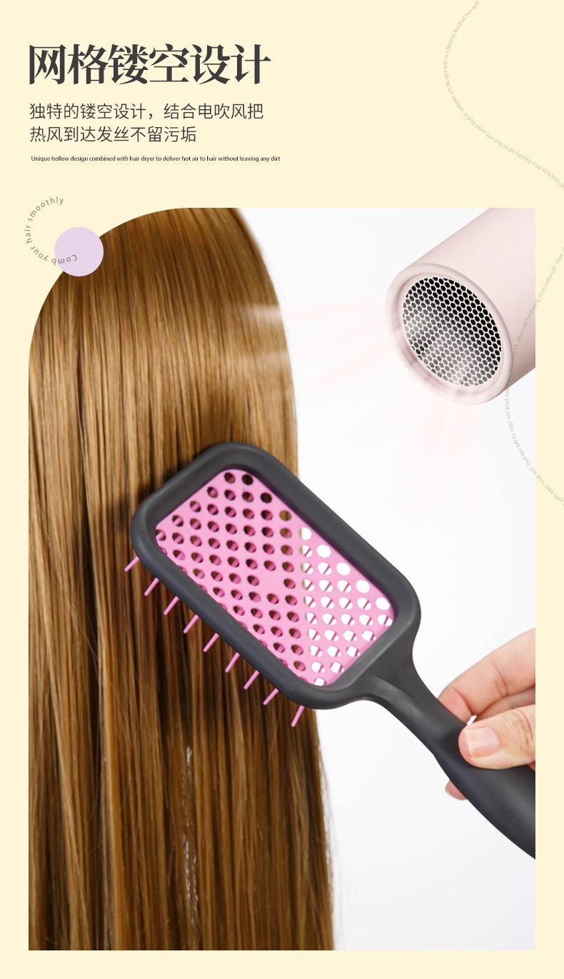Pente Quadrado Vazado Colorido de Alto Nível para Massagem no Couro Cabeludo e Limpeza, Pente para Estilizar em Casa, Ferramenta de Cabeleireiro