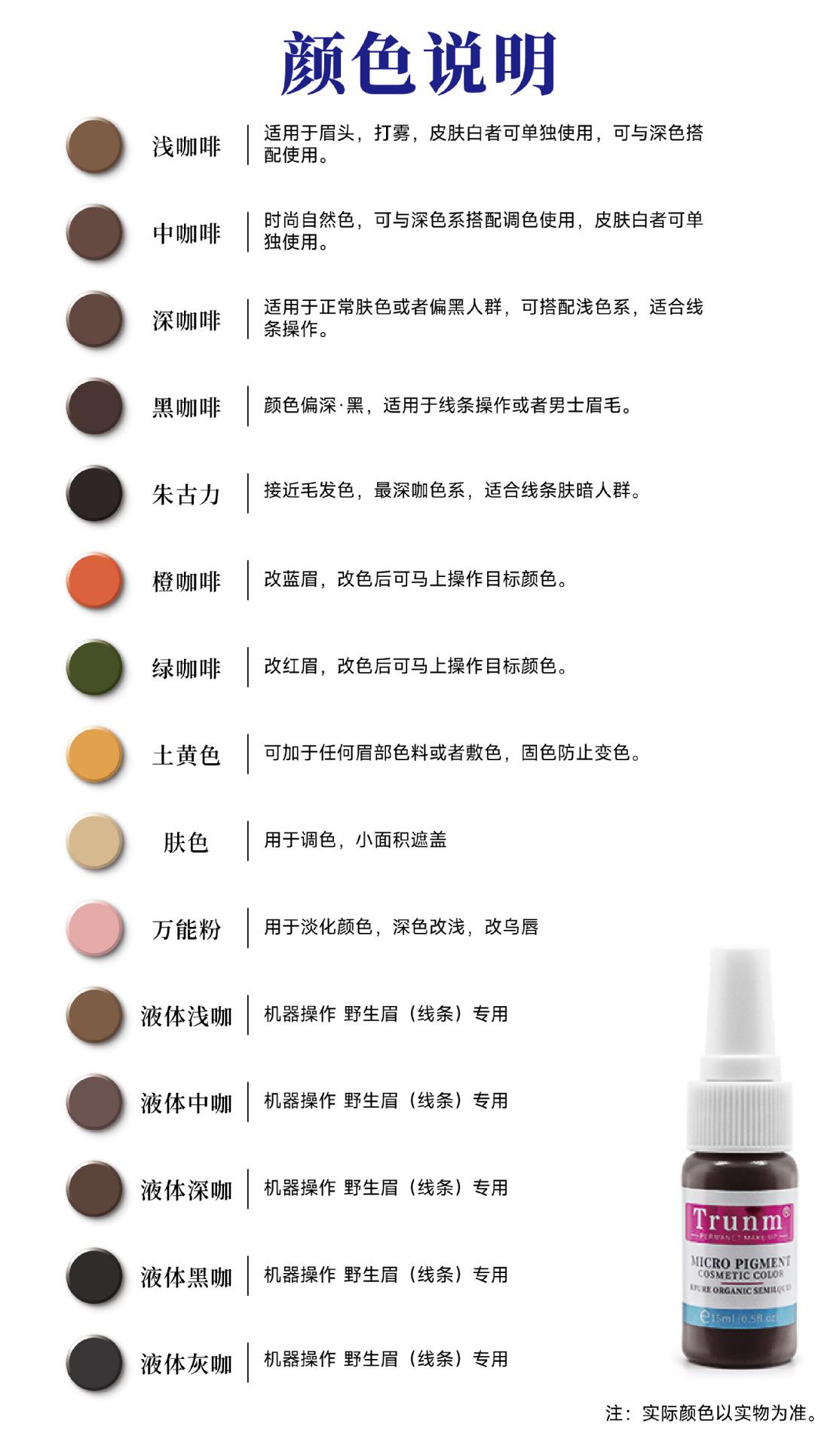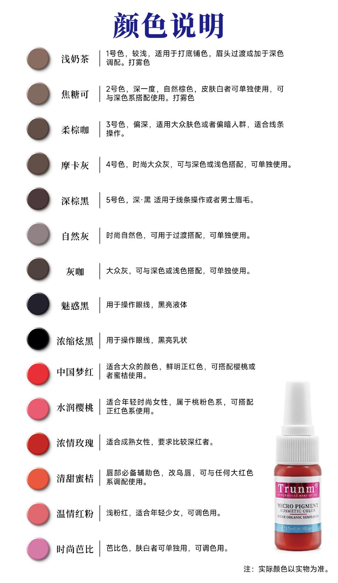 Tatuagem semipermanente Trunm Alemanha, cor de névoa para sobrancelhas, linha selvagem, delineador para sobrancelhas, lábios flutuantes, cor de leite, atacado