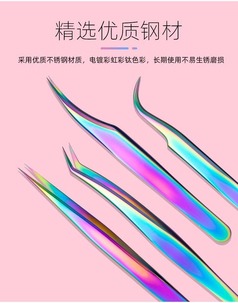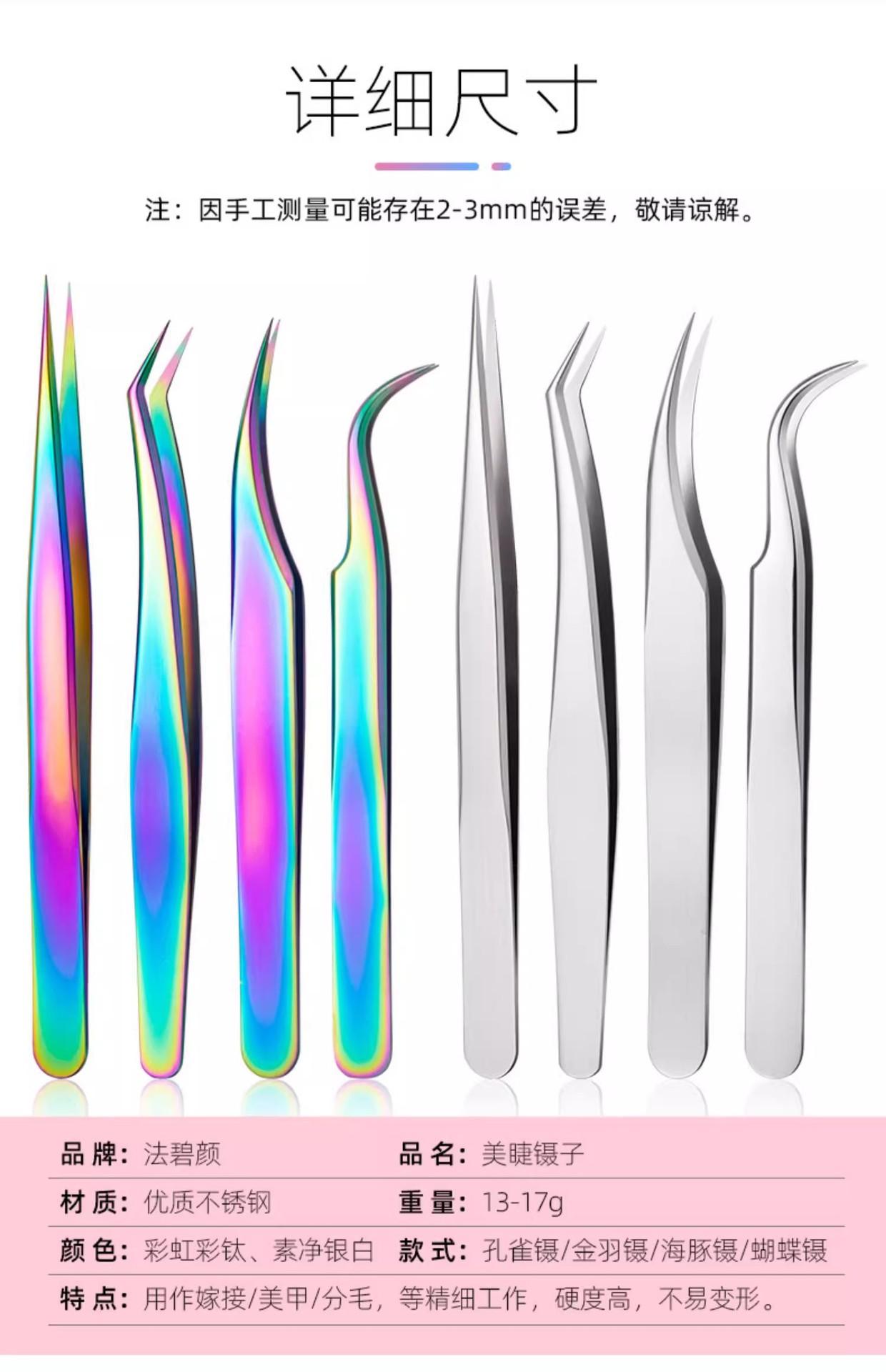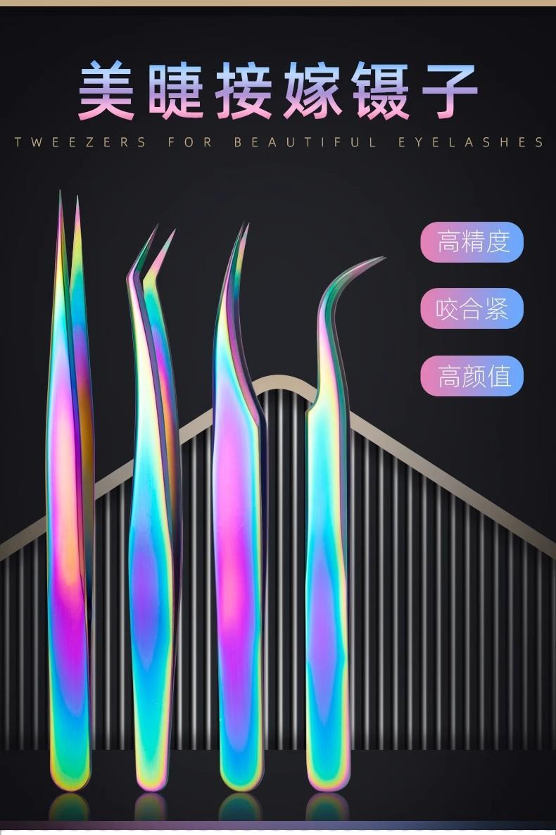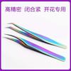 Fábrica de plantio enxerto pinças cor linda cílios pinças alta precisão perto enxerto cílios postiços pinças pena dourada golfinho clipe