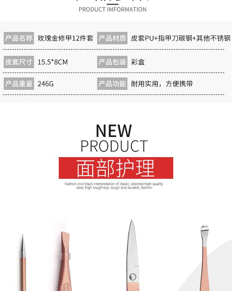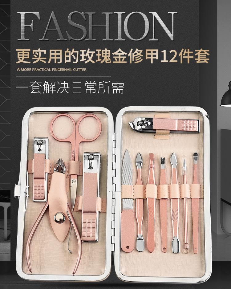 Compre Vendas Diretas de Fábrica Conjunto de Cortadores de Unha Ouro Rosa de 12 Peças Acessórios de Aço Inoxidável Conjunto de Manicure Pode ser Impresso com Logo para Nail Art no atacado no Joom.pro