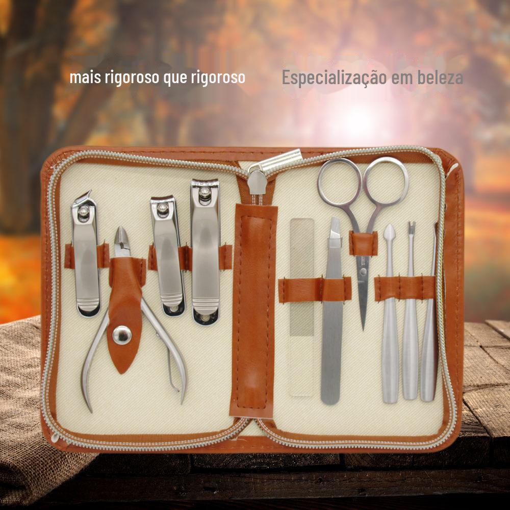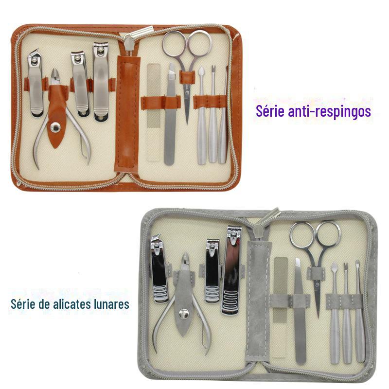 Aço inoxidável nail art manicure tool set anti-splash cortadores de unhas alicates de pele morta 10 peças set cortadores de unhas arquivo de vidro
