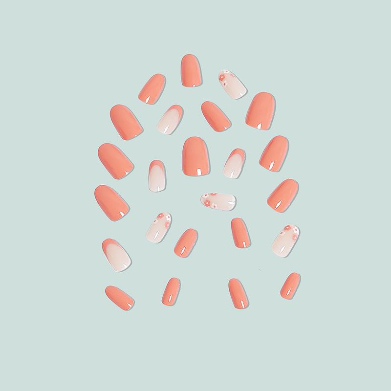 Unhas francesas laranja, remendo de unha com flor doce, pequeno remendo de unha floral, peça de unha destacável finalizada, atacado