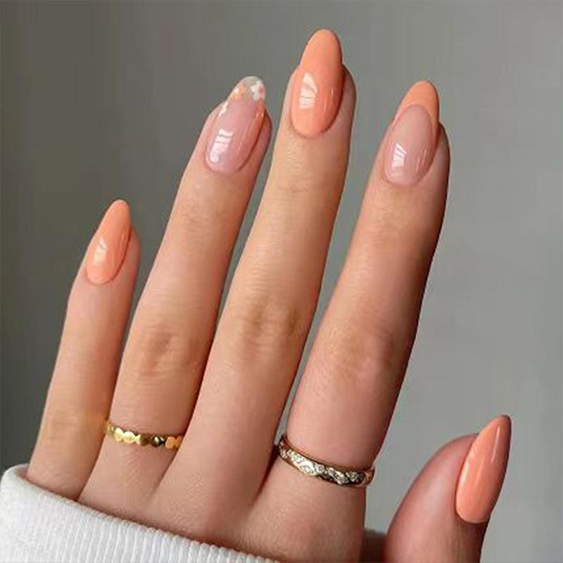 Compre Unhas francesas laranja, remendo de unha com flor doce, pequeno remendo de unha floral, peça de unha destacável finalizada, atacado no atacado no Joom.pro