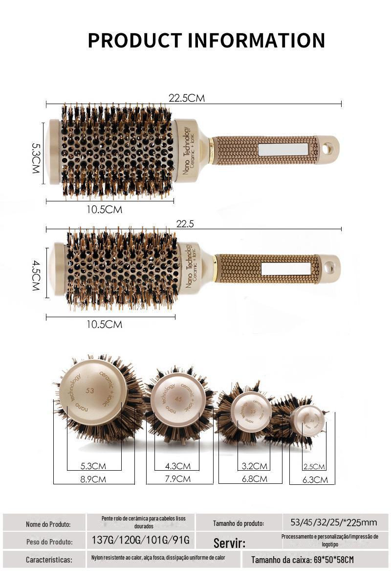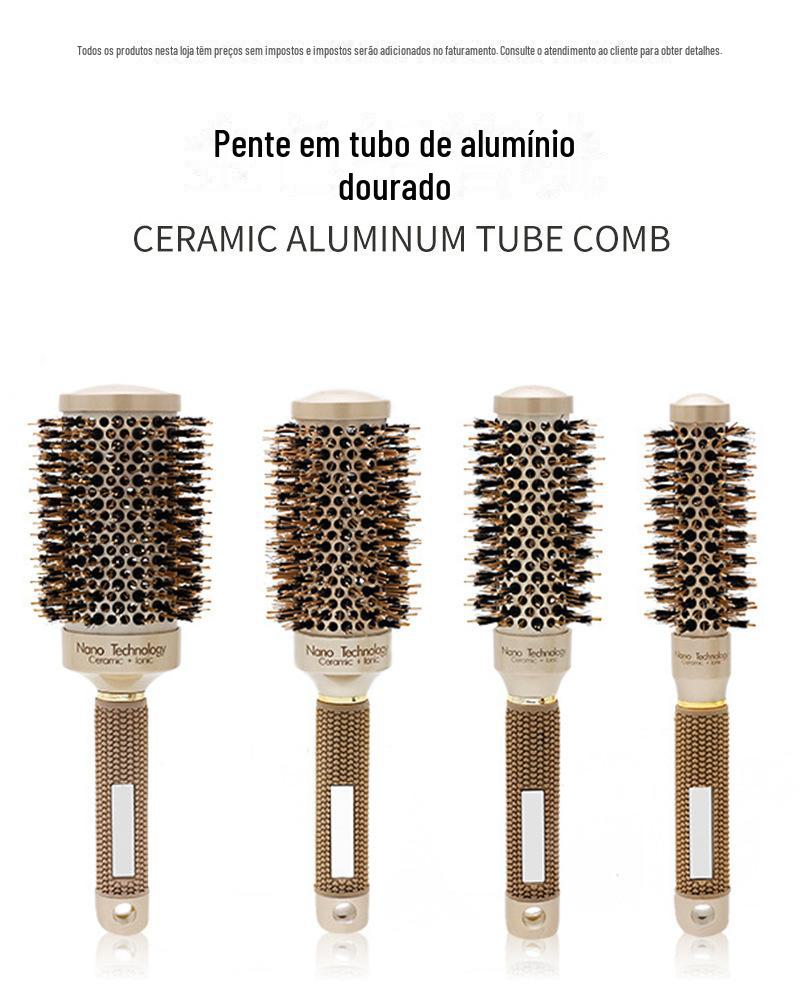 Amazon dourado curling pente cilindro pente cerdas grande curva pente cerame tubo de alumínio pente rolando pente cabeleireiro terno pente