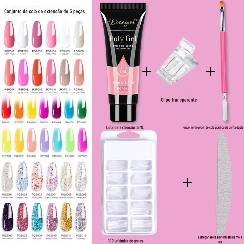 Novo conjunto de cola de extensão de cristal de 15ML, conjunto de caneta de cola de cabeça dupla, tira de fricção para unha, conjunto de 5 peças, novo produto para arte em unhas¥15Comprar agora